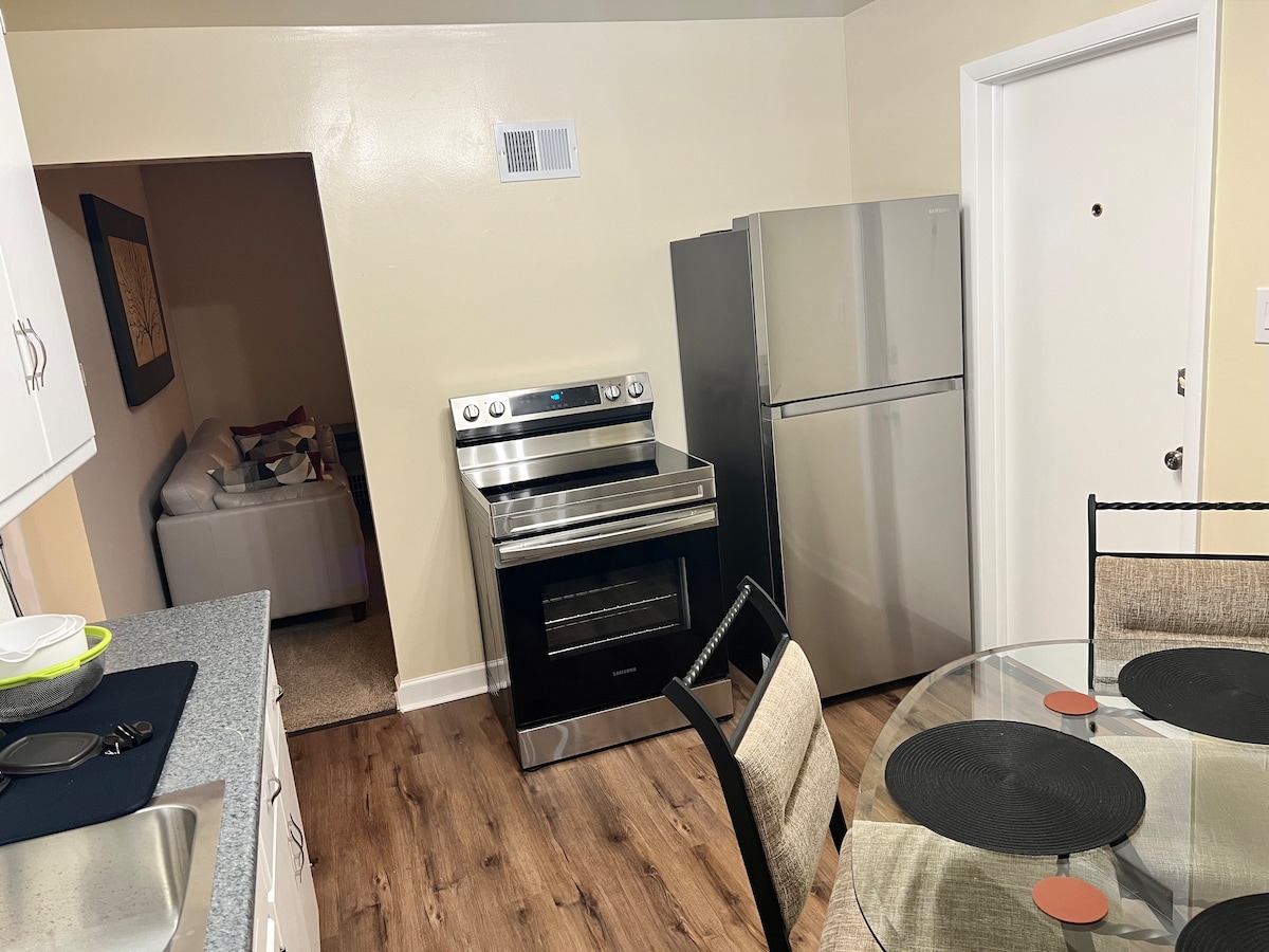 3 yataq otağını 1500sq.ft yuxarı düz təmizləyin və sakitləşdirin. İmkanlara daxildir: ön balkon, Netflix, alma tv, 4k 65" TV, 120" proyektor, ofis sahəsi, qonaq Wi-Fi, təhlükəsizlik sistemi, küçə parkinqi, əsl aşpaz mətbəxi və əla qonaqpərvərlik. Sorğuya əsasən mövcud camaşırxanadan istifadə. (2)Tam Ölçülü Çarpayılar, (1)Kraliça Ölçüsü Çarpayı, (1) İkimərtəbəli Çarpayı, (1)Futon, Döşəkağı və Yastıq ilə Hava Döşəkləri sorğuya əsasən təmin edilə bilər.