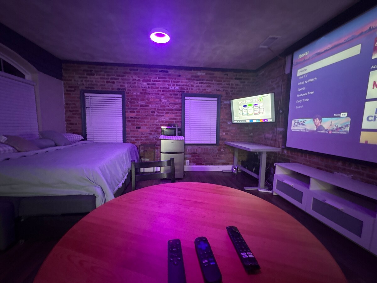Guesthouse studio w/ rustic exposed brick walls.