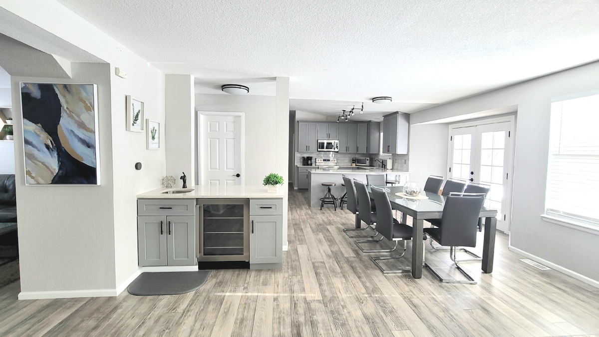 Make yourself at home in this beautiful Colorado vacation home that backs to open space, centrally located for easy access to Denver, Boulder, Rocky Mountain National Park, & the mountains. Hardwood floor throughout. Clean, modern, & cozy. Two gas fireplaces, deck, grill, multiple TVs, high-speed internet, pool table, ping pong. Everything you need to cook in a gourmet kitchen. Bike trails & parks in the neighborhood, great local restaurants, and a reservoir with walking trail nearby.