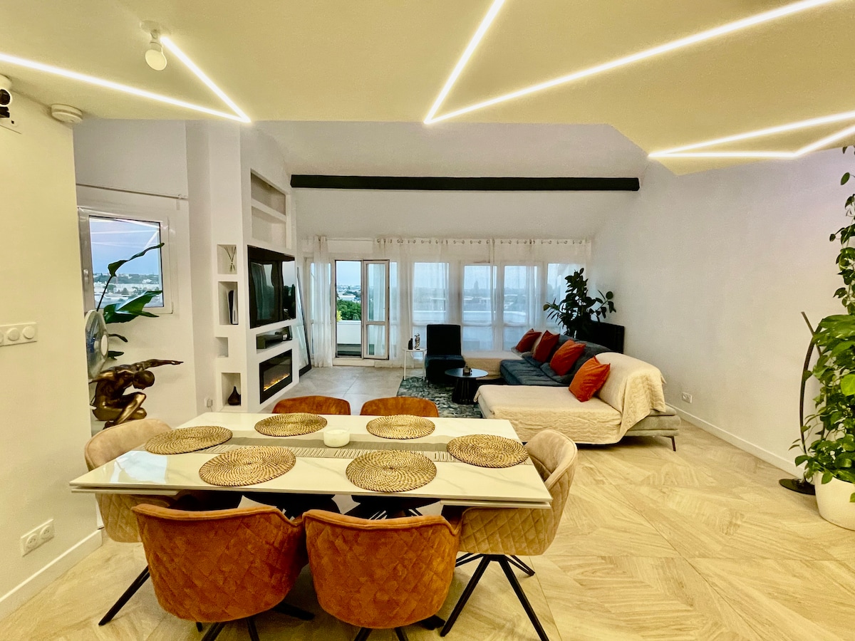 ✨ Les Portes de Paris-də qonaqlayın ✨ İSTİKLİ HÖVÜZÜ, böyük bağçası və Parisin möhtəşəm mənzərələri olan valehedici ev – Disneyland® və şəhər mərkəzindən cəmi 20 dəqiqəlik məsafədə. 🎊 Ad günləri, subay qız gecələri, nişan mərasimləri, səmimi toy mərasimləri və ya körpə üçün hədiyyə gecələri üçün ideal məkan 🎊 Bağçaya, isidilmiş hovuza, verandaya və terrasa giriş – 25 nəfərə qədər – dəbdəbəli və səmimi atmosfer, Paris və Disneydən 20 dəqiqəlik məsafədə. (Ətraflı məlumat üçün yaşayış yeri bölməsinə baxın)