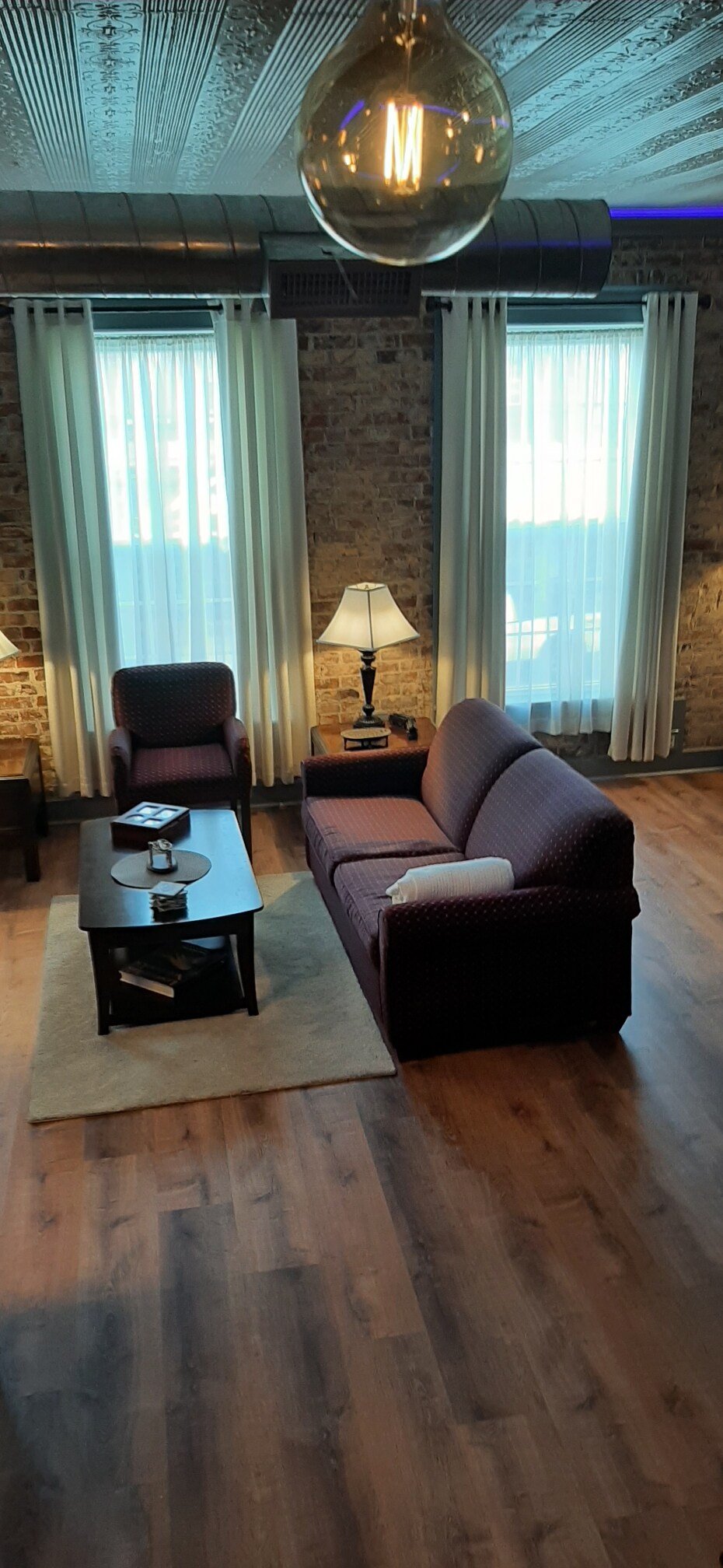 FREE FULL BREAKFAST FOR TWO INCLUDED DAILY in the restaurant... Downtown Delta, Ohio, a small, friendly village a short distance from Toledo and Detroit. TwentyTwo Steps to Flat 212 is perfect for the quick getaway. Visit family, or attend sports, great for history buffs. Enjoy your stay in the newly decorated & unique space. A fully stocked kitchen, wi-fi, rainfall shower, heated floors, even a piano, restaurant, bar, & patio below, Walk through the entrance & feel at home.