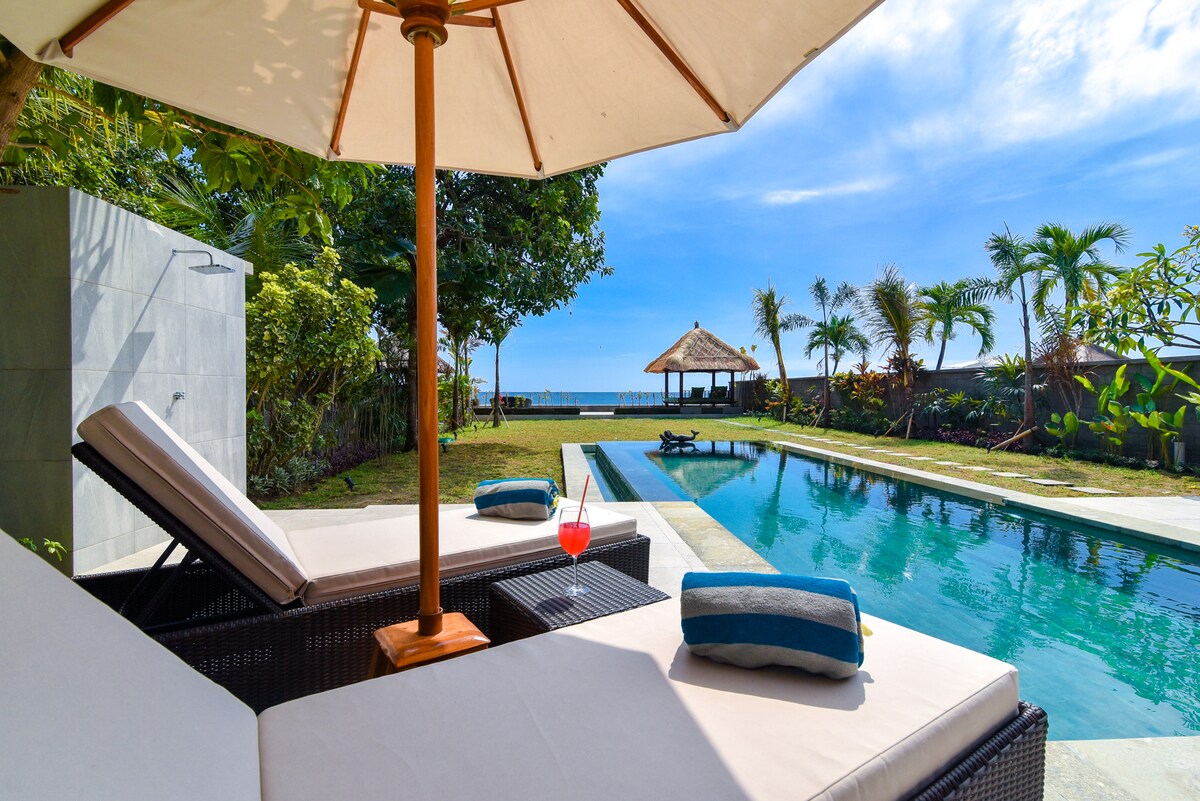 Are you looking for a beautiful, luxurious beach villa to spend your dream vacation on Bali? Villa Bersama is the right choice for you! This beachfront villa, with large swimming pool, beautiful tropical garden and welcoming staff can accommodate up to 8 people. The villa has 4 bedrooms, 3 bathrooms, a large living room, kitchen, terrace, bale benong and all the amenities for an unforgettable holiday. The villa is located close to Lovina, the tourist place on the north coast of Bali.