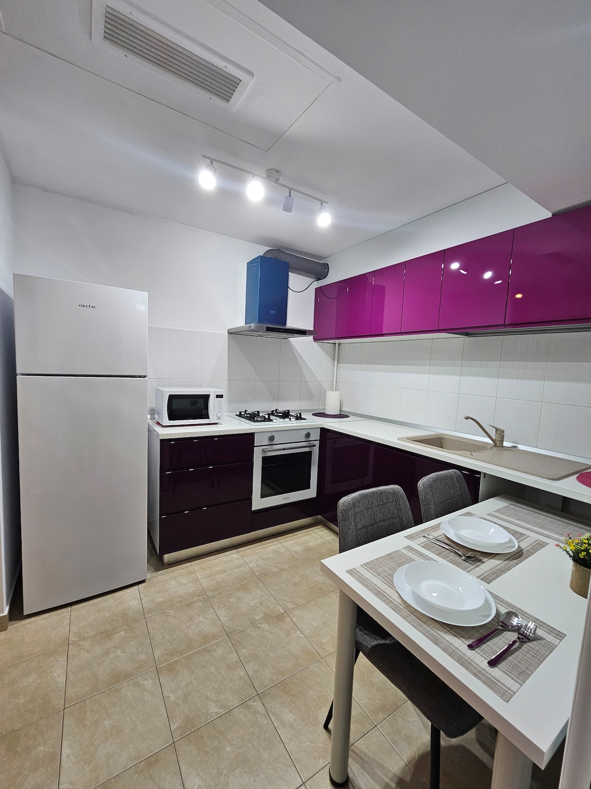 Pepas Residence is a modern one-bedroom apartment featuring a cozy living area with a sofa, a fully equipped kitchen, and a stylish bathroom. Located on the 6th floor of a new building with elevators, it includes a washing machine with dryer, free underground parking, and an electric car charging station (extra fee). Just a 5-7 minute walk to Pipera metro, it's in a quiet, safe area near shops, Promenada Mall, and the Pipera-Aviatiei business district, perfect for both short and extended stays.