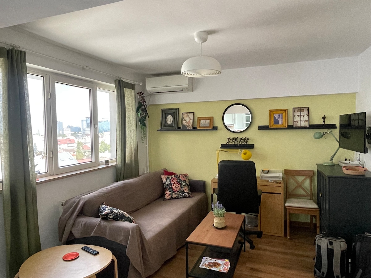 Spacious luxury 40 sqm studio in the heart of Bucharest, just steps from Old Town Bucharest. Recently renovated, the apartment features elegant decor, a comfortable queen-size bed (180×200 cm), a stylish sofa, a cozy balcony, a large fully equipped kitchen and a spacious bathroom with rain shower. Hosted by a Superhost with over 7 years of experience. Metro right next to the building. Coffee shop, cake shop, mini markets, fast food, ATM and currency exchange on the ground floor.