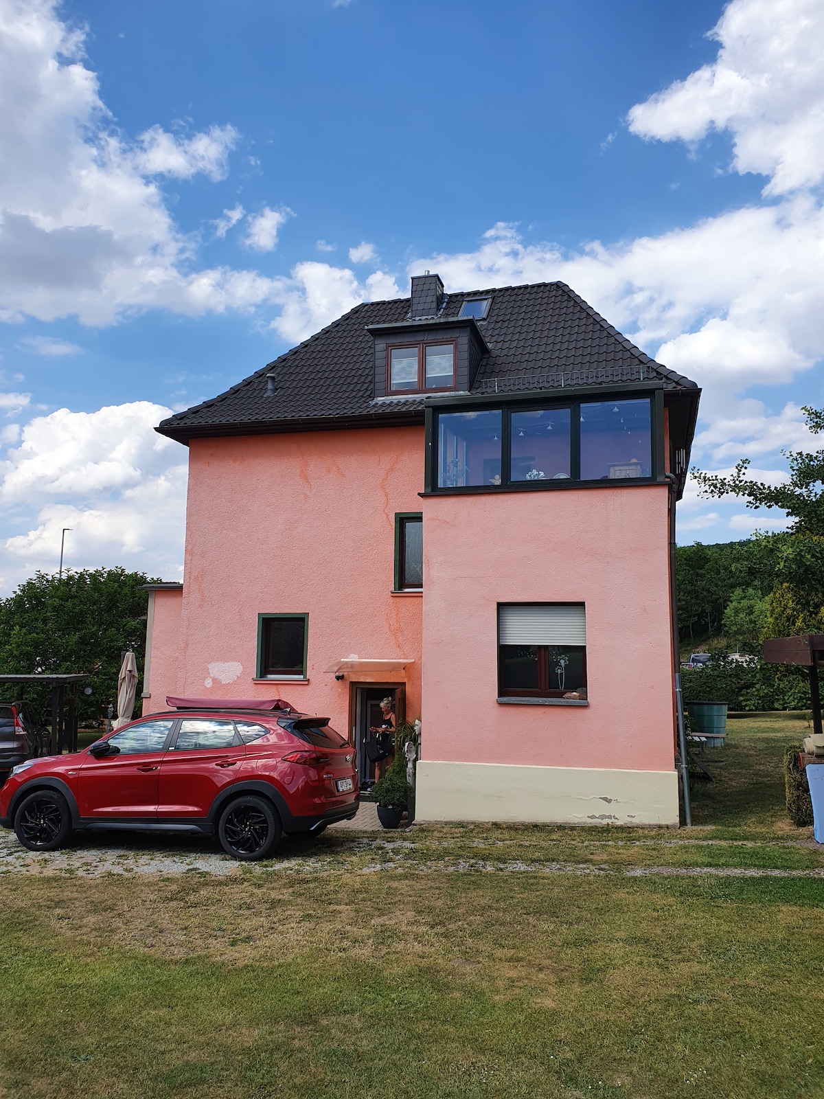 Die Wohnung liegt im Erdgeschoß und ist im Sommer schön kühl. Sie wurde ganz neu saniert und liebevoll ,mit viel Handwerklichem Geschick, von uns selbstgestaltet. Die Holzwerkstatt ist im Haus. (nur als Hobby....es ist kein Lärm zu Erwarten)😉Der Garten ist eine kleine Oase und in ihm befindet sich meine Floristenwerkstatt,die ich gewerblich betreibe. Die Räume der Wohnung sind hell ,geräumig und freundlich . Verdunklungsrollos sind angebracht. Die Küche iist gut bestückt mit allem was man so braucht. Als Gastgeber wohne ich vor Ort und stehe jederzeit bei Fragen zur Verfügung. Bücher und Spiele sind vorhanden.