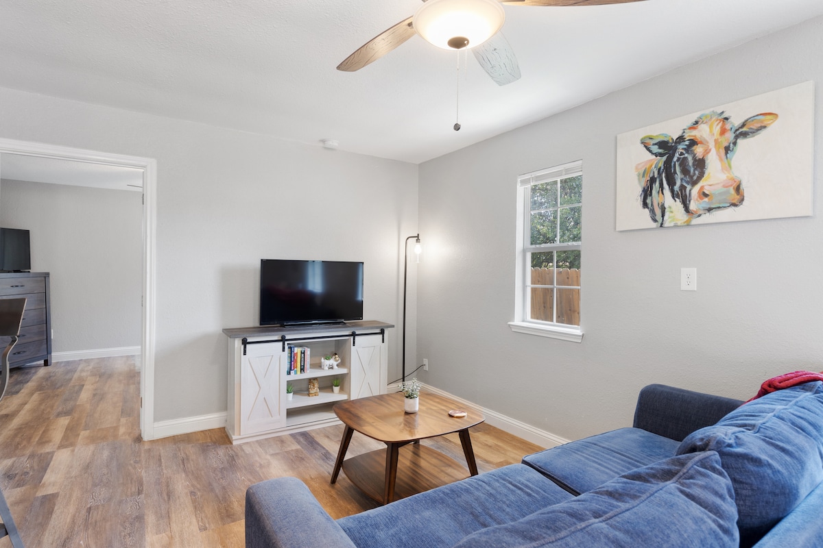 İstər iş, istərsə də dincəlmək üçün ideal olan La Casita tam təchiz olunmuş mətbəxi, paltaryuyan və quruducu maşını və sürətli Wi-Fi bağlantısı ilə uzaqdan iş və ya uzunmüddətli qonaqlamalar üçün mükəmməl olan müasir, şəxsi bir məkanıdır. Dincəlmək və ya iki ev heyvanını təhlükəsiz şəkildə gəzdirmək üçün hasarlanmış özəl həyətiniz olsun. I-35 avtomobil yoluna asan çıxış sayəsində restoran, mağaza və yerli turistik məkanlara bir neçə dəqiqəlik məsafədəsiniz. Erkən giriş və qeyri-məcburi əlavələr mövcuddur.