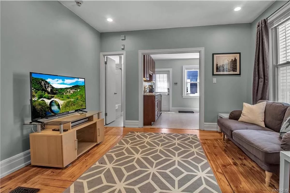 Updated Upper Unit Apartment. Great City Location! Walking Distance to Five Points, and Lower West Side Restaurants and Shops. Off Street Parking. In Unit Laundry. WiFi. Pets Allowed ($50 pet fee). Queen Bed and Fold Down Futon. Blocks from D’Youville University and minutes from Buffalo State University! Close to Kleinhans Music Hall, Elmwood Village and Allentown! 10 Min Drive To KeyBank Center - 20 Min Drive To Highmark Stadium - 20 Min Drive To Niagara Falls