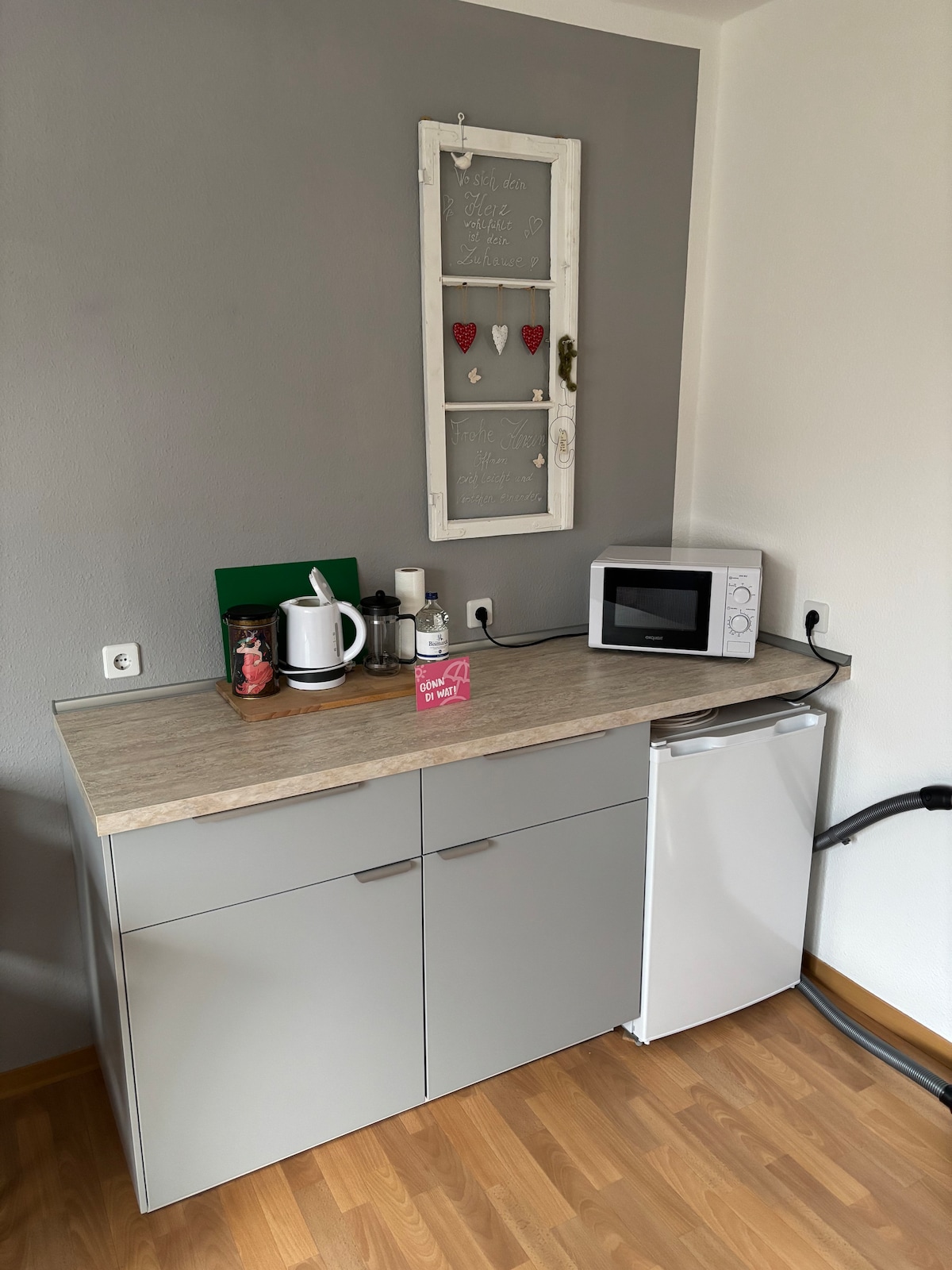 Greifswald mərkəzində ikinci mərtəbədə sakit, parlaq və mehriban mənzil. Üçüncü mərtəbədə damdan görünən böyük dam terrası. Piyada məsafəsində teatr, kinoteatr, muzey limanı, zoopark və qatar stansiyası. Kərpic Qotik üslubunda qəşəng evləri olan bazar, Pommersche Dövlət Muzeyi kimi yaxınlıqdadır. Bu, heyvansız evdir. Buna görə də, təəssüf ki, heyvanlar xoş qarşılanmır. Mənzildə siqaret çəkməyə icazə verilmir.