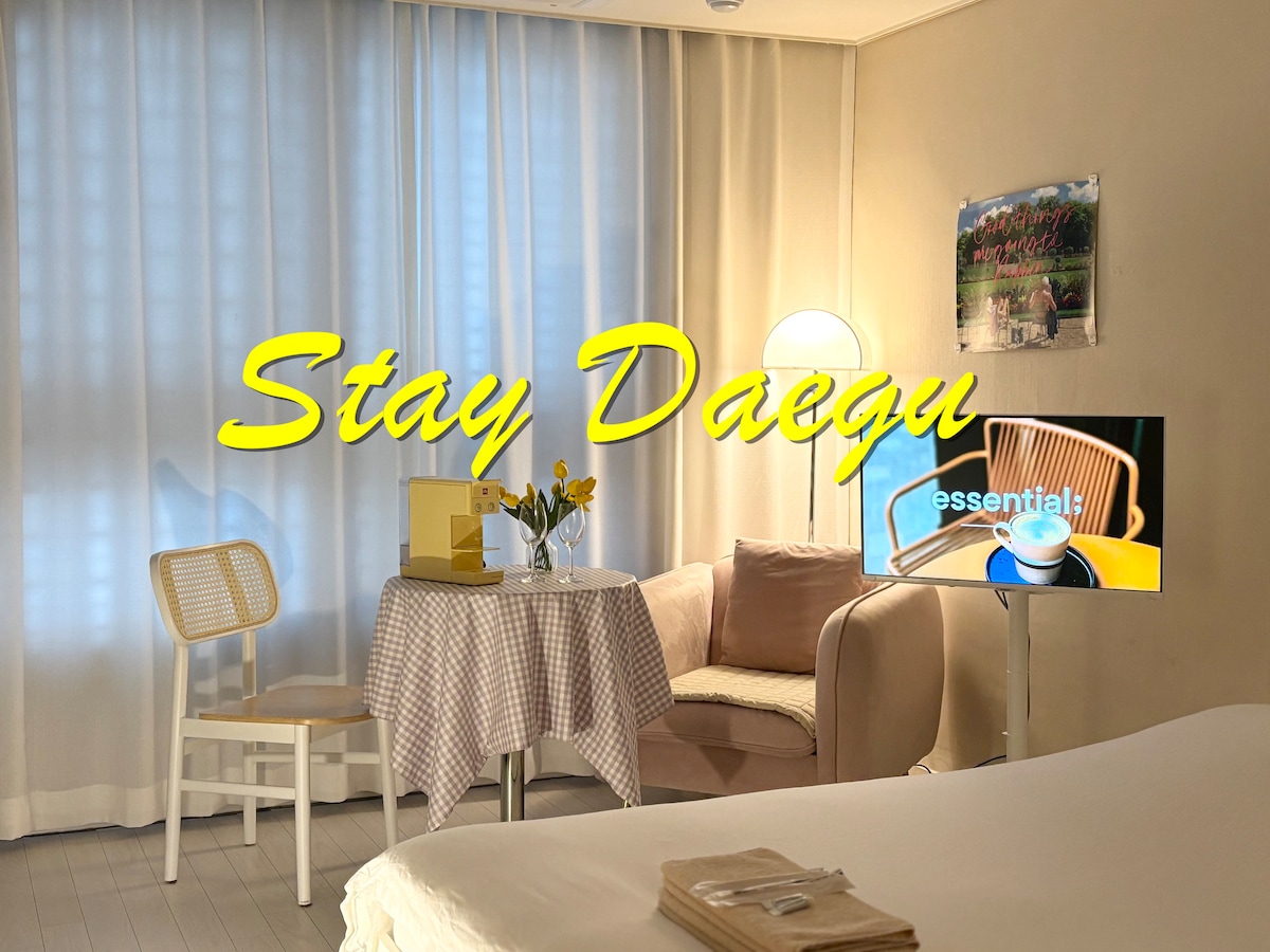 Bu, 🐥Müasir Qonaqlamadır.✨ ⚠️S1 CCTV4 binanın təhlükəsizliyini idarə edir⚠️ 🏡O, Daegu Gyeongbuk Milli Universiteti, Dongdaegu Stansiyası, ExCo və Dongseong-ro-nun qarşısında yerləşir. ⭐️Giriş 5: 00/Çıxış 12:00 - >️ Rəy yazsanız, çıxışınızı bir saat uzada bilərsiniz.️ ⭐️Yaşayış binasının xarici divarının yanında avtomobil dayanacağı mövcuddur (İlk gələnə üstünlük verilir) Dolu olduqda sizi yaxınlıqdakı pulsuz küçə parkinqinə yönləndirəcəyik. ⭐️Lüks döşək və qeyri-səlis yataq dəsti var! ⭐️Otaqda paltaryuyan maşın, yuyucu vasitə, quruducu, mini ütü İşgüzar səfərlər və səyahət üçün mövcuddur😊 ⭐️Qəhvə qazan, mikrodalğalı soba, hava fritözü, toster Sadə aşpazlıq mövcuddur 💖Çanaqaltı Su Təmizləyicisi və Buz Maşınının Quraşdırılması💖 Rahat şəkildə içməli su və buz içə bilərsiniz. ⭐️Airbnb kənar biznesdir. Qonşularınıza zərər verə biləcək səs-küy salmaqdan🔇 çəkinin 🥹