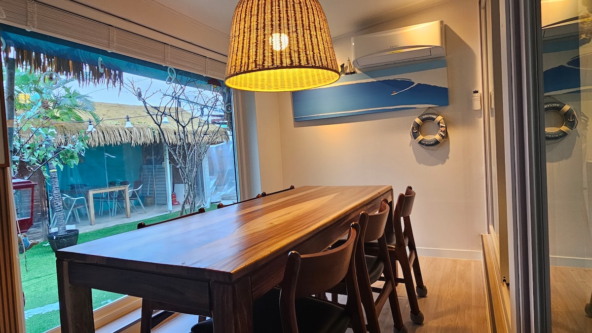Bu, böyük qazon və şam bağı olan ayrıca pansionatdır. Təzə təbiətin mərkəzində ailəniz və ya dostlarınızla birlikdə istirahət edə bilərsiniz. Kənddə dincəlməyə və şəfa tapmağa çalışın. Çöldə ayrıca barbekü qril var. Geniş bağçada uşaqlar öz templəri ilə oynaya və düşərgə sala bilərlər. Kənddə vaxt keçirmək istədiyiniz kimi ziyarət etmək üçün uşaq kimi ziyarət edə bilərsiniz. Çoxlu kənd və sakit atmosfer ilə xoş xatirələr qura bilməyiniz üçün Soldamda rahat və isti xidmət təmin edəcəyik. * Barbeküdən istifadə xərci 20 000 KRW-dir. * Ardıcıl gecələr üçün 30 000 endirim və ya barbekü + odadavamlı xidmət qazandı! * 36 ay və ya daha az müddətə pulsuz, məktəbəqədər uşaqlar üçün isə 10 000 əlavə haqq qazanıb. Məbləğ tətbiqdə tənzimlənə bilməz, buna görə də körpələri olan qonaqlar üçün bron edərkən bizə mesaj yazın. * Qapalı məkanda ev heyvanlarına icazə verilmir. Anlayışınız üçün təşəkkür edirik.