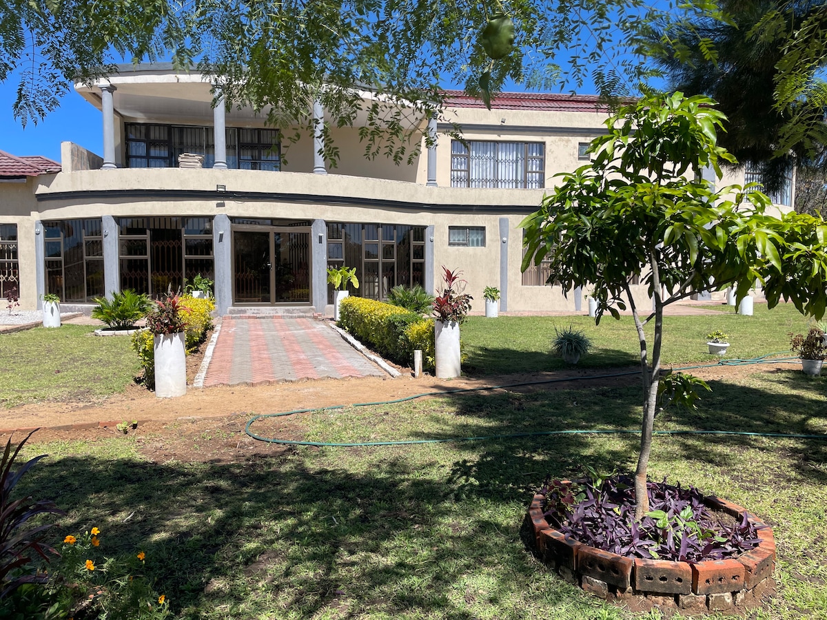 This stylish and unique place sets the stage for a memorable trip with quick and easy access to the central business district. The house can accommodate a minimum of 16 and a maximum of 32 adults. The house is nestled on 5 acres of land laid to lawn and shrubs There is Joshua Nkomo’s museum and a small dam nearby, There is free parking on site with 24 hour security and cameras in site The environment is safe with neighborhood watch, It’s gated,locked at night with a security watch overnight.