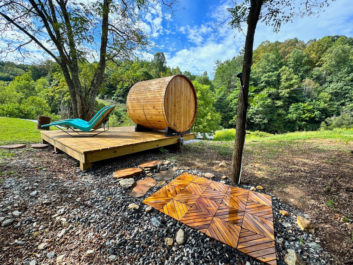 Bu yaddaqalan məkan adi bir şeydən başqa bir şeydir. 1924-cü ildə tamamilə bərpa edilmiş Spartan İmperial malikanəsi. Qərbi NC-də ən yaxşı mənzərələrdən biri və Weaverville və Blue Ridge Parkway-dən 5 dəqiqə və Asheville-dən 15 dəqiqə. Bu, sevgi əməyi olub və xüsusi örtülü açıq havada yaşayış sahəsi və cantileverli göyərtə Karvanın özü qədər heyrətamizdir. Açıq havada duş, infraqırmızı sauna, soyuq terapiya çəni, üstəgəl kiçik təbiət cığırı və təcrübəni tamamlamaq üçün ekizlər.