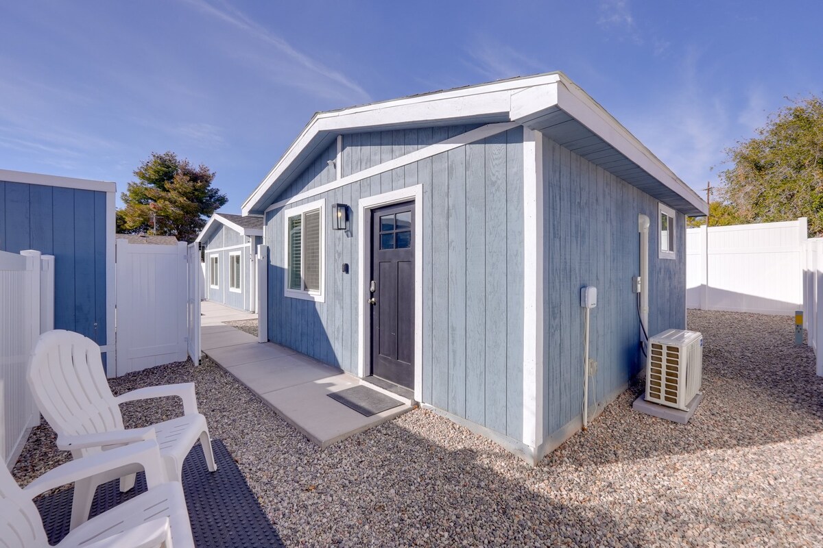 New adorable, fully functional studio home located in a premium location in Mesquite, Nevada, near stores, restaurants, golf, sports parks, & casinos. Situated in a quiet neighborhood with beautiful sweeping mountain views. Featuring 1 premium king bed, a memory foam full futon sleeper, & a single memory foam cot bed. A perfect romantic retreat for a couple and plenty of room for a small family too. We perform an all surface sanitization treatment before each stay.
