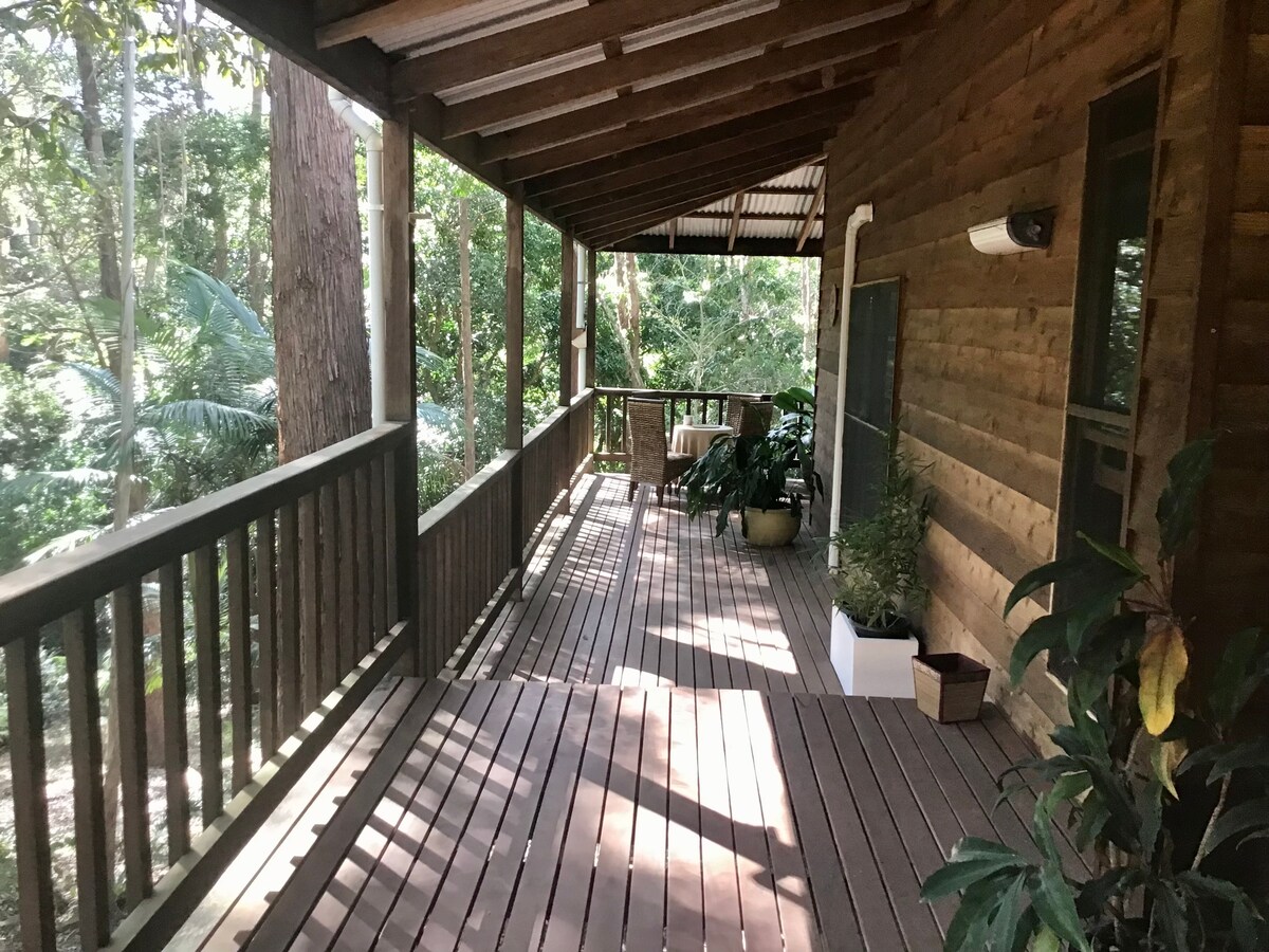 A tranquil timber chalet in a forest setting, 15 minutes from the Noosa river, 20 minutes from hasting street, Noosa, or Eumundi, The chalet is Canadian built with the extensive use of timber and a wide veranda wrapping around, Large kitchen with all utensils and cooking needs, large open plan living and dinning areas, Two bedrooms each with own WC and hand basin, 1 Bathroom, outdoor dinning and barbecue areas complete this idealistic setting surrounded by nature, 10 min from most facilities