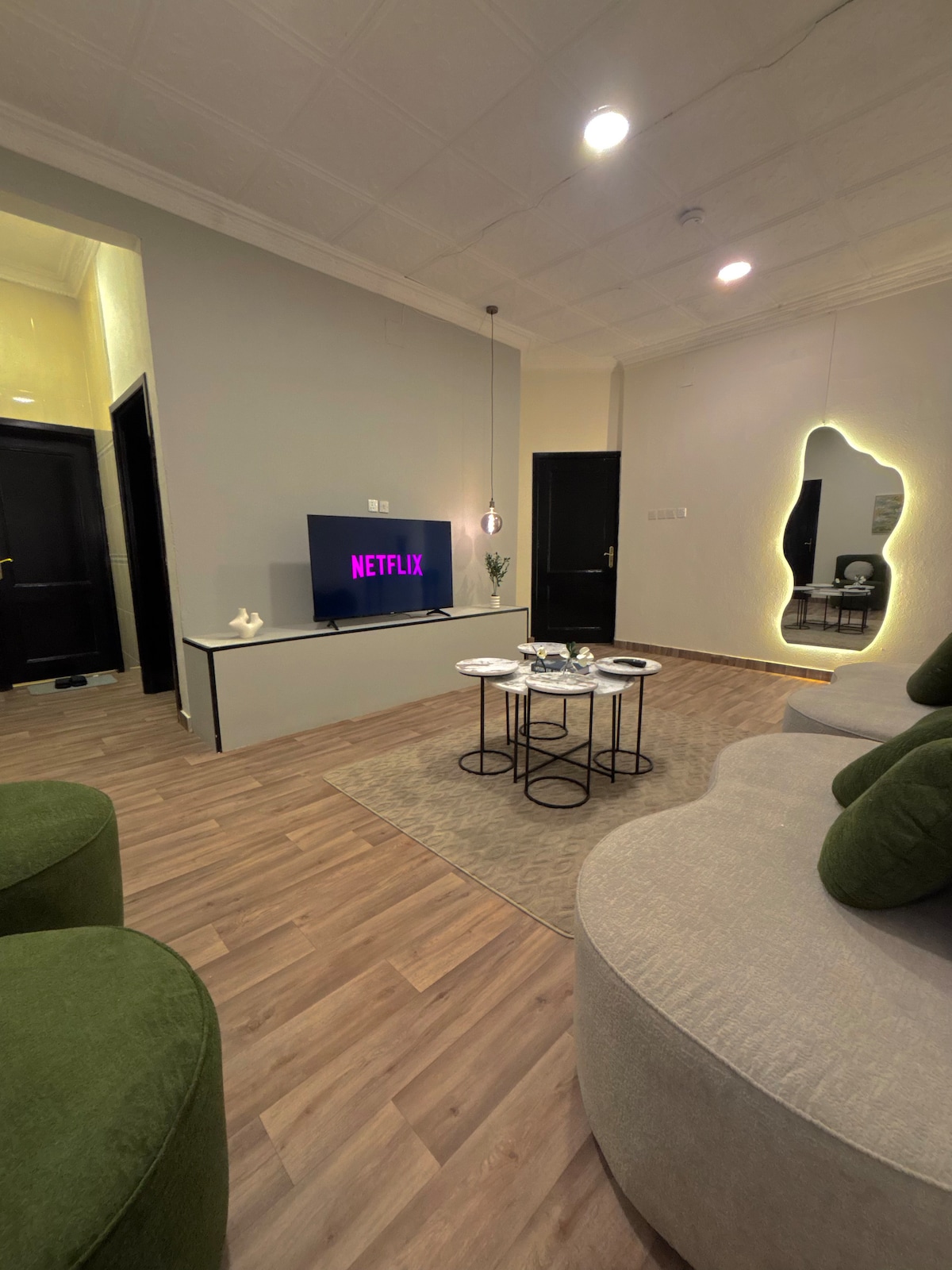 مرحبًا بك في شقتنا الفاخرة، التي تجمع بين أناقة الفندق والتصميم الحديث، مما يوفر إقامة استثنائية تتجاوز التوقعات. تتميز غرفة المعيشة المنفصلة الواسعة والمصممة بأناقة، بأرائك مريحة وتلفزيون ذكي للترفيه. توفر غرف النوم مراتب عالية الجودة للنوم المريح. تقع في قلب المدينة، وهي قريبة من المعالم السياحية والمطاعم. احجز الآن لتجربة لا تنسى.