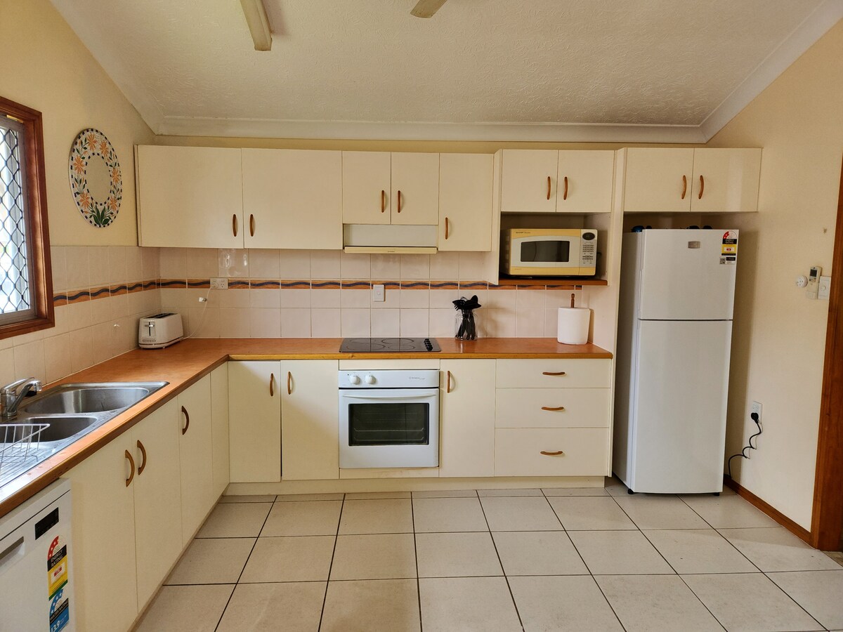 Cosy cottage is set on 3/4 acre with mango trees in the back yard. Home Hill sits on the banks of the Burdekin River 8 kilometres south of Ayr. The Burdekin Bridge separates the twin towns. Cosy cottage is nestled in the back streets off the Bruce Highway however guests can look forward to the peace & tranquility, relax n chill after a big day in quiet location. 7a Avenue is all permanent residences set on large land size, meaning guests can enjoy space & privacy. Non smoking, vaping