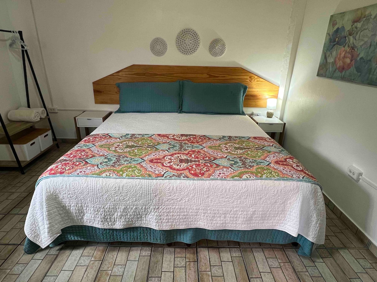 Very cozy small cottage but spacious tucked between the trees and only 7 minutes ride to downtown Boquete. The cottage has a washer and dryer and very nice finishes. A comfortable king size bed and kitchenette with all the utensils needed to prepare breakfast or a small meal. Public service transportation is available just as you open the gate and leave the premises. Wi-Fi service available and reliable. Hot water on the shower, sink and kitchen faucets.