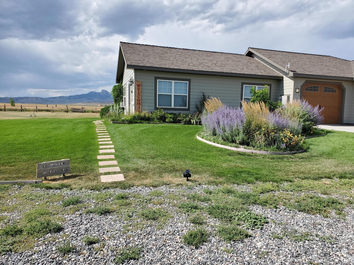 11 hektar ərazidə yerləşən, ehtiyacınız ola biləcək hər şeylə təchiz olunmuş, 2 yataq otaqlı, 1 hamamlı müasir ev. Vayominq ştatının Kodi şəhəri mərkəzindən cəmi 5 dəqiqə və Yellouston Milli Parkından cəmi 50 mil məsafədə yerləşən geniş açıq məkanlarla əhatə olunmuş bu kənd atmosferini hiss edin. Daha əvvəl görmədiyiniz kimi gecə səmasına baxın və od çuxurunun yanında isinərkən çəkiliş ulduzlarını izləyin. Barbekü və heç vaxt tərk etmək istəməyəcəyiniz böyük verandada nahar edin. Qərbin möhtəşəm qürublarından və qürublarından zövq alın!