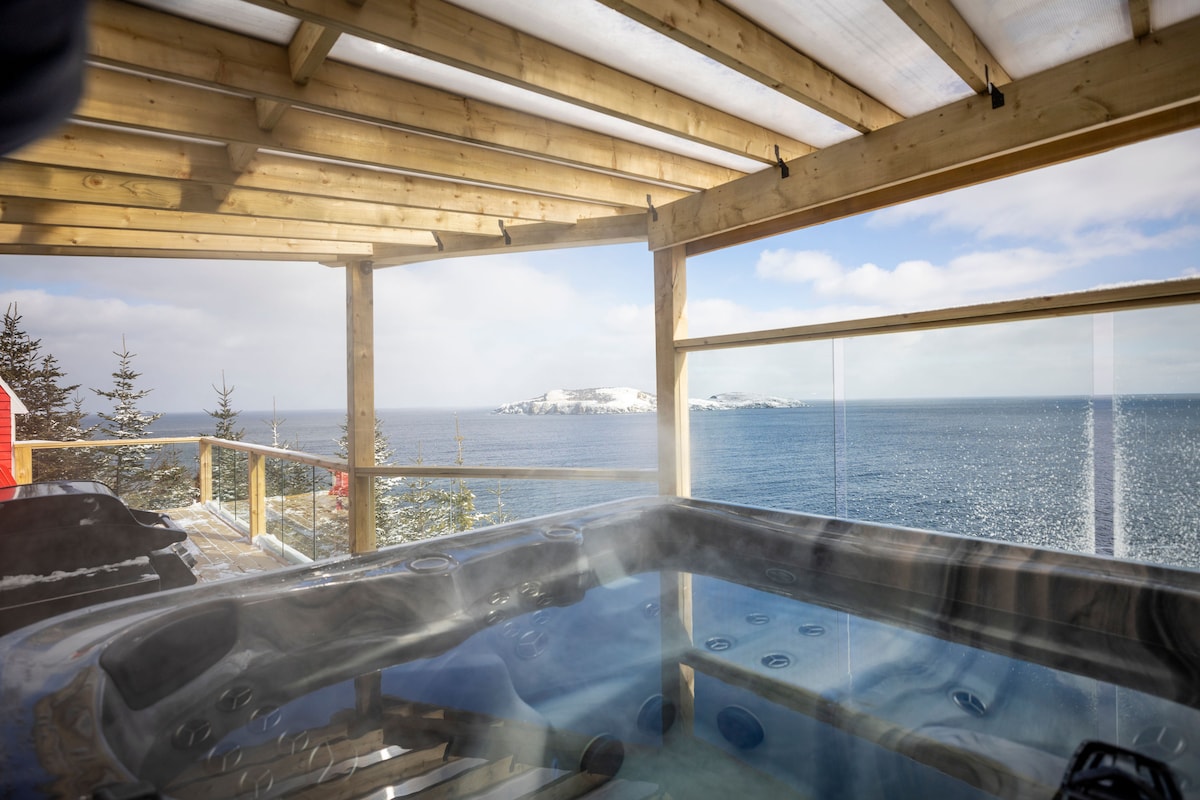 BOOK 2 WEEKNIGHTS & GET THE 3RD FREE (till the end of May) 🌊 Private OCEANFRONT HOT TUB to watch the fiery ☀️sets over Trinity Bay 🛏️ KING bed with 1000-thread-count EGYPTIAN cotton sheets + LED ambient lighting 🛁 Plush TURKISH cotton towels 🔥Woodstove for warmth and comfort 🪟 Enclosed four-season patio for year-round comfort 🍕 BBQ griddle & PIZZA OVEN combo for food lovers ❤️ Perfect for a romantic getaway or peaceful escape 🐾 PET-friendly 🔥Propane fire pit for evening gathering