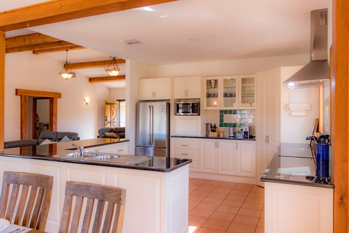 Our beautiful Tuscan style house near Tumbarumba is the perfect place to relax and unwind. Recently renovated with 5 bedrooms and sleeping up to 14, the guest house is situated on 25 hectares including a working vineyard and incredible views of the pristine Snowy Mountains. Only 10 minutes to town, its perfectly located for surrounding attractions including the 21km Rail Trail cycling track, lakes, fishing, hiking, Tumut, Adelong and our friends at Courabyra Wines. 20% discount for 7 day stays.