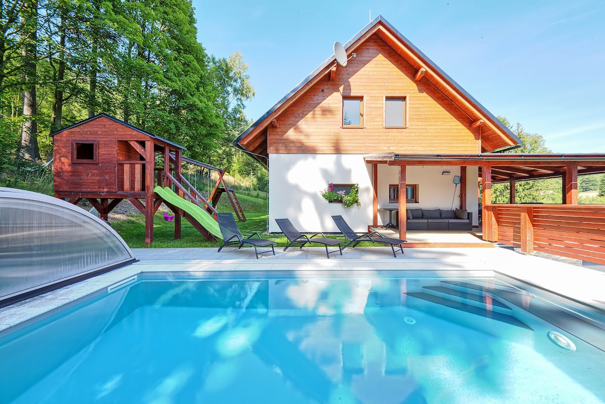 1895-ci ildə tikilmiş kottecimiz Praděd dağının ətəyindəki Vrbno şəhərindəki Yesniklərin tam mərkəzində yerləşir və ətraf dağların gözəl mənzərəsini təqdim edir. Kottec gözəl Yesenik təbiəti ilə əhatə olunub və ondan bir az aralıda meşə başlayır. Sakitlik, terrasdan və ya aşağı hissədəki gölməçədən gözəl mənzərə açan böyük bağ təmin edir. Ətrafda gəzinti, yürüyüş və ya velosiped sürmək üçün saysız-hesabsız imkanlar var. Onları bağda çiçək açan alma ağacının kölgəsində istirahətlə birləşdirmək ideal olar.