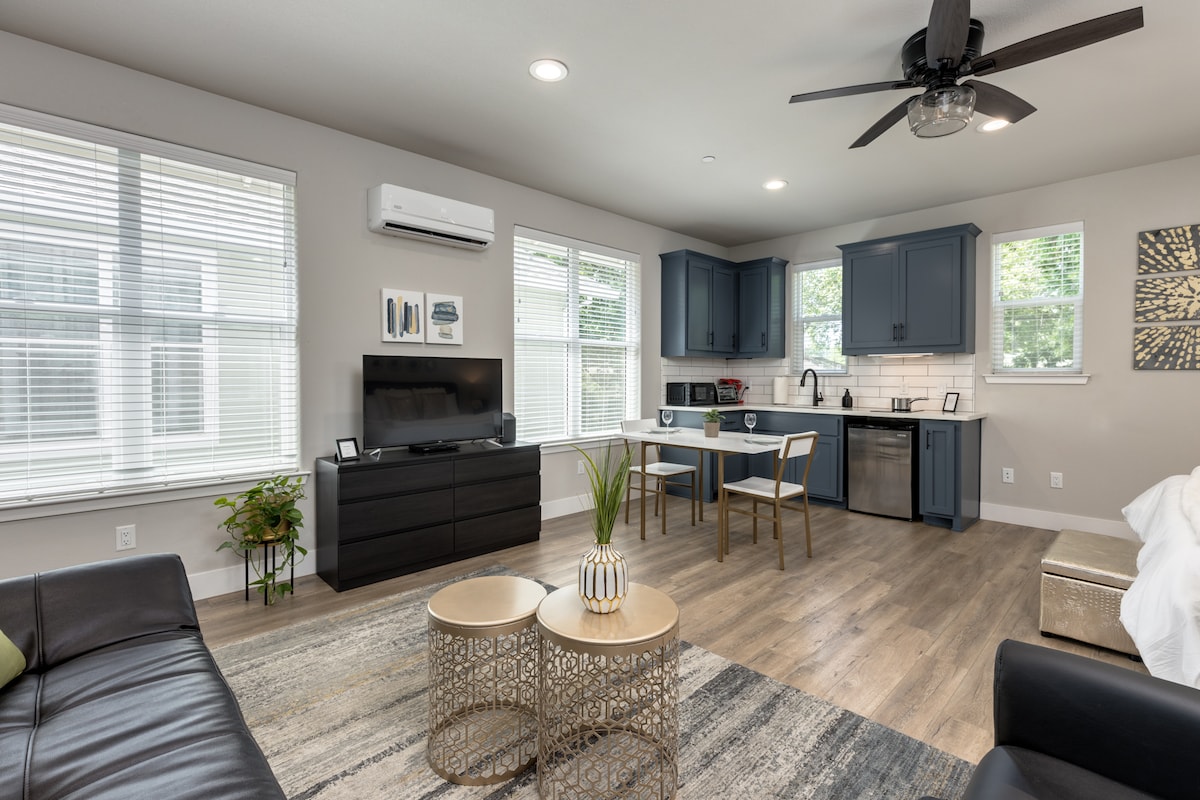 This private courtyard guesthouse is a quiet, newly renovated ADU on our family’s property with a private entrance and free driveway parking. Designed for travelers, business stays, and couples, the space features high ceilings, a spa-like oversized shower, and a kitchenette for light cooking. Best suited for peaceful, respectful stays.