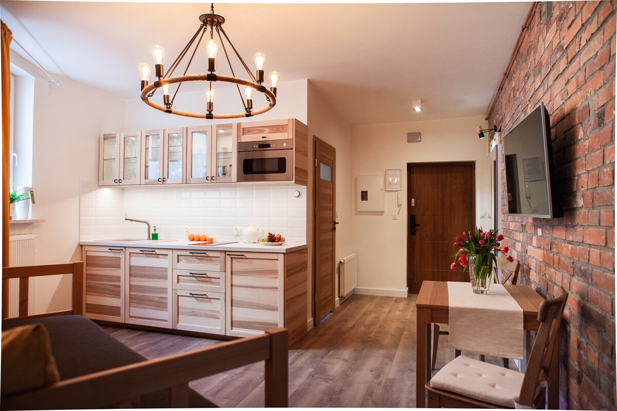 Bərpa edilmiş binanın birinci mərtəbəsində tam təchiz olunmuş, mebellə təmin edilmiş və yüksək səviyyədə bəzədilmiş iki otaqlı mənzil mövcuddur. Yerləşməsi böyük üstünlükdür, ticarət mərkəzinə cəmi 5 dəqiqəlik məsafədədir, o cümlədən Auchan, camaşırxana, kafe, restoranlar, McDonald's, Kfc, WSG, Multikino, Opera Nova, Bydgoszcz Kanalı, Biznes Park, Atos. Yaxınlıqda Park, Köhnə Şəhər Meydanı, restoranlar, pablar, mağazalar var. Dəmir yolu stansiyasına 10 dəqiqəlik məsafədədir. Cütlüklər, işgüzar səyahətçilər, ailələr (uşaqlı) üçün idealdır
