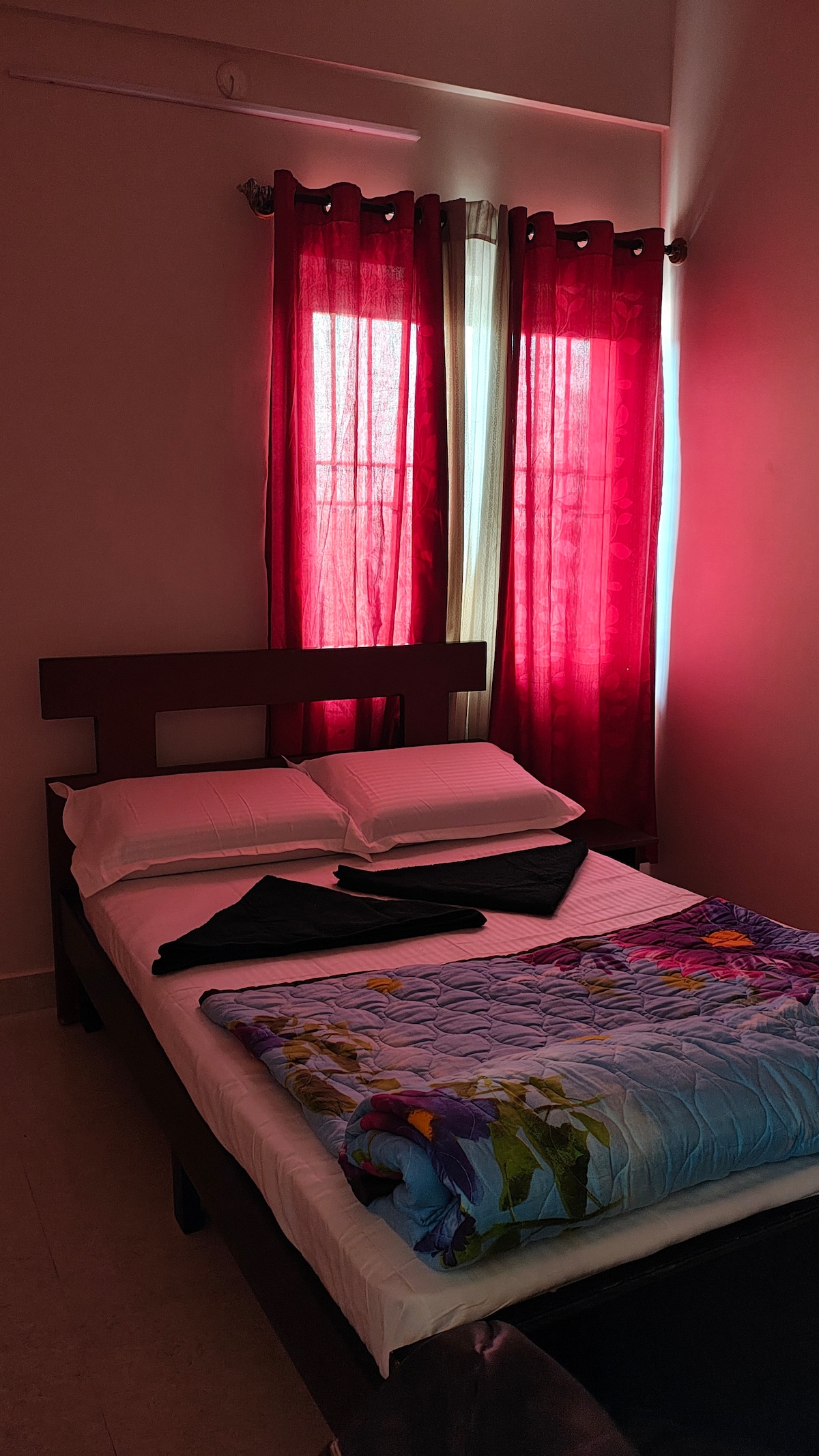 Banqalorun sakit yaşayış yerində yerləşən dəbli, rahat 1BHK düzümüzə xoş gəlmisiniz. İstənilən hava şəraitində rahatlıq üçün Kondisioner ilə təchiz edilmiş bu sakit istirahət məkanının sakitliyindən zövq alın. 100mbps-ə qədər Wi-Fi ilə asanlıqla yayımlayın və velosipedinizi əngəlsiz rahat park edin. Keyfiyyətli döşəkağılar geyinmiş premium döşəkağılarda dincəldikcə pulsuz çay və qəhvə için. Sizi narahat olmayan qonaqlama üçün təmin edilmiş şampun və sabunla təmin etmişik. Rahatlığı və komfortu ən yaxşı şəkildə təcrübədən keçirin!