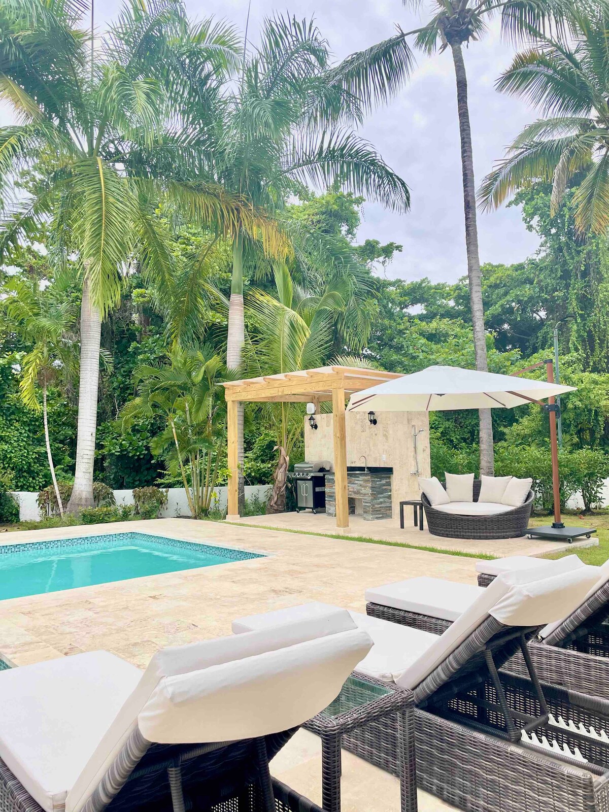 Welcome to your Casa Lela, a naturally ventilated 4-bedroom tropical escape designed for relaxation and connection. Nestled in a quiet gated community just a 10-minute walk from one of the best surf beaches in the Dominican Republic, this wooden architectural gem comfortably hosts up to 12 guests. Refresh in the 20-meter pool with jacuzzi under the stars, lounge on the pool terrace, fire up the BBQ, or relax in the large tropical garden. Close to restaurants, cafes, and local attractions.