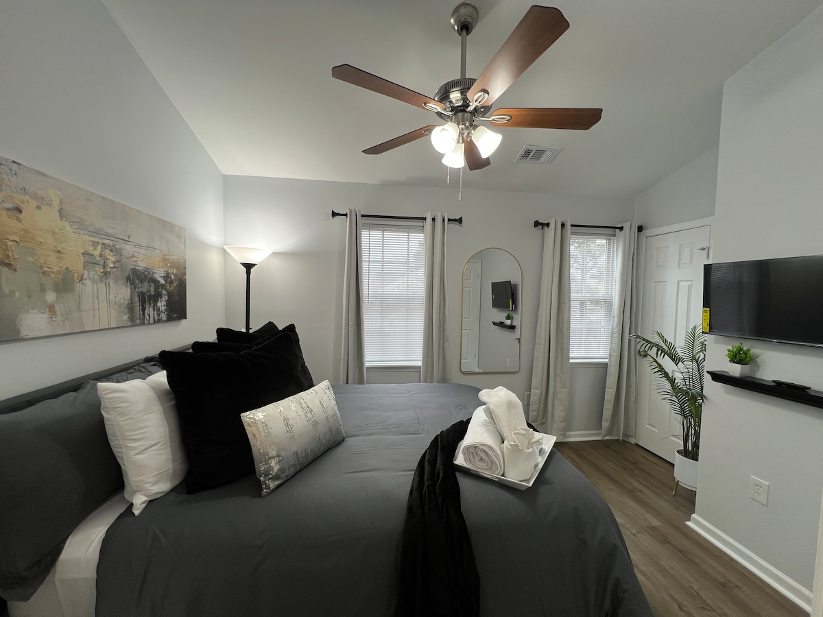 Experience historic downtown Concord in this spa-inspired retreat—blissfully designed for comfort, style & connection. Sleeps 4, full kitchen, fast Wi-Fi, free parking & more. Steps from breweries, restaurants & The Depot—the South’s largest antique mall. 200+ stays & 140+ 5-star reviews say it all: this is your go-to Concord escape. Unwind with plush beds, calming decor & smart TV, plus self-check-in, laundry, and hotel-quality touches that make this feel like your own private boutique stay.