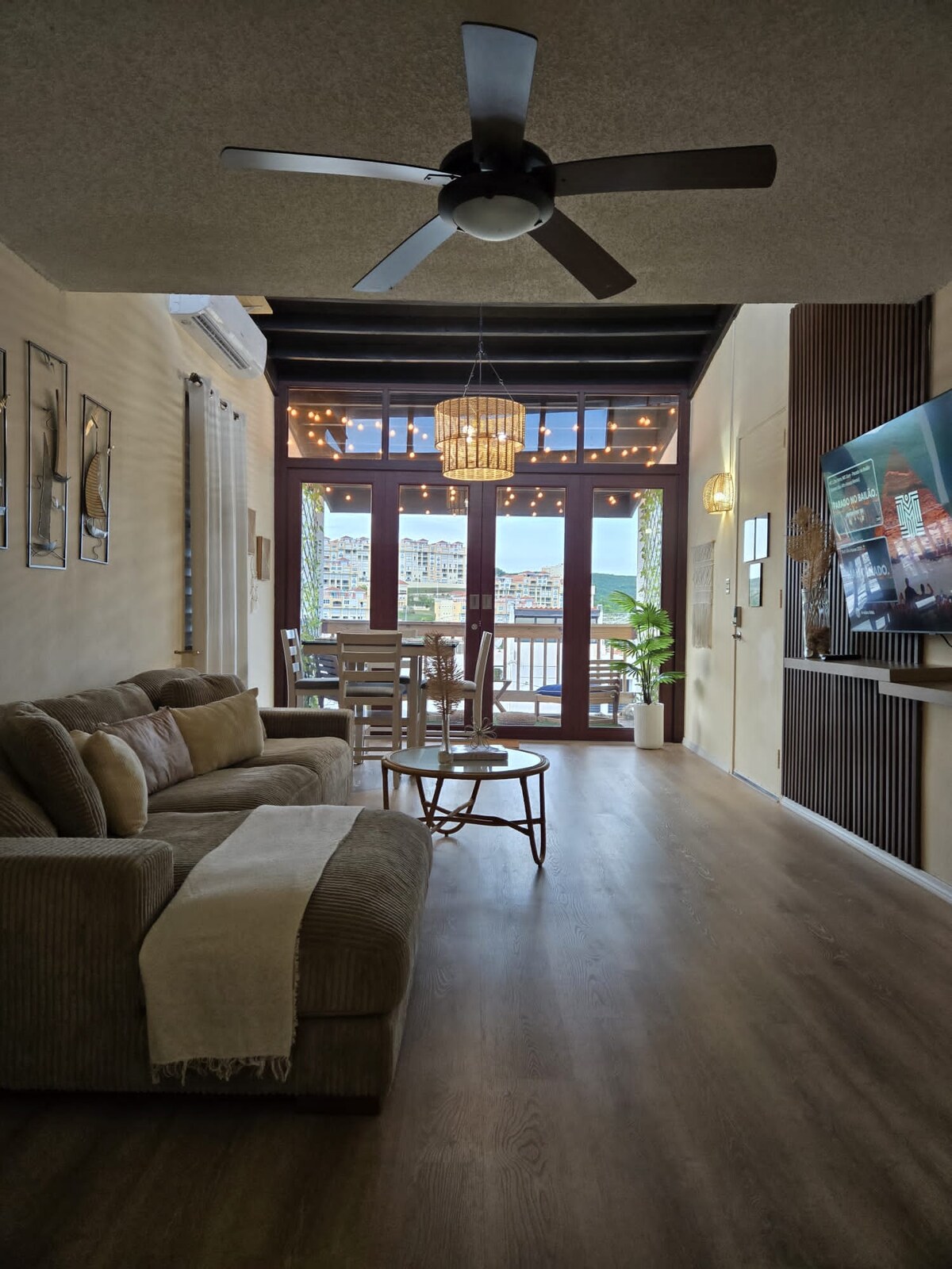 Cənnətdə oyanın! Möhtəşəm mənzərəsi olan balkonda səhər qəhvənizdən zövq alın. Bu mənzil Fajardo sahilindən 5 dəqiqəlik məsafədə, xüsusi bir adada yerləşir və daxil olan bərə vasitəsilə əldə edilir. 2 hovuz, basketbol meydançası, voleybol meydançası, tennis kortu, piknik zonaları və camaşırxanası ilə tam təchiz olunmuş kompleks. Böyük balkondan günəş böhranları və günəş vannaları qəbul edərək nəfəs almağa hazır olun!