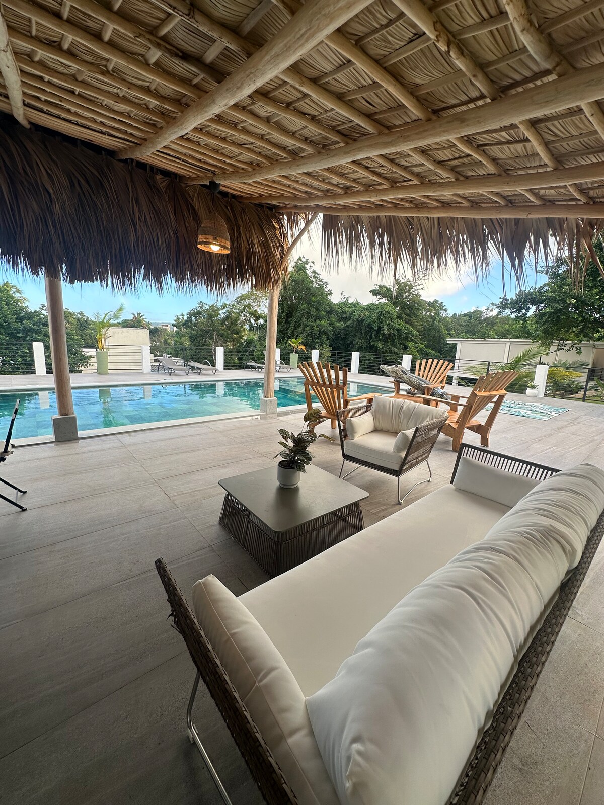 Las Terrenas yüksəkliklərində, lomanın ortasında, Los Puentesin hamamı altında yamyaşıl bitki örtüyünün mərkəzində, xüsusi hovuzun ətrafında "idleness" üçün Las Terrenas körfəzinin çox gözəl mənzərəsindən zövq alırsınız. Siz lomanın təravətindən zövq alırsınız və orada ağcaqanadsız yaşayırsınız. 400 m hündürlükdə yerləşən evdən Las Terrenas kəndinə və onun çimərliklərinə 10 dəqiqəyə enirsiniz Ev 6 evdən ibarət kiçik kondominiumdan asılıdır 24 saat mühafizə olunur...