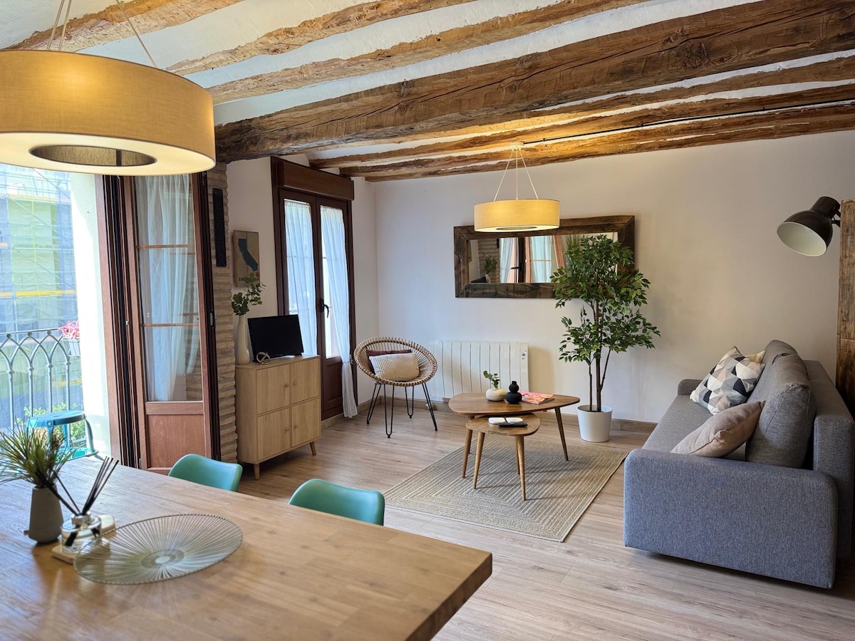 Bu yaxınlarda bərpa edilmiş, Loqroño "Portalları" nın ən emblematik piyada küçəsində bazar meydanından və Katedraldan iki dəqiqəlik məsafədə yerləşən gözəl rustik üslublu mənzil. Ətrafda terraslar, şərab barları, restoranlar, muzeylər və məşhur dəmir körpüdən və Ebro Parkından 5 dəqiqəlik məsafədə yerləşir. Mənzil liftsiz dördüncü mərtəbədədir, lakin pilləkənlərin səyinə dəyər. Uşaq arabaları daşımalı olan körpələri və ya kiçik uşaqları olan ailələr üçün tövsiyə edilmir.