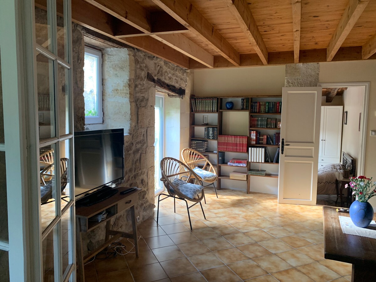 Kiçik Bordo Toskanasına və onun əsrlərlə üzüm bağları ilə örtülmüş yamaclarına xoş gəlmişsiniz. Görüş yerində sakitlik və rahatlıq, eləcə də kənd mənzərəsi və gün batımları sizi gözləyəcək. Məkanda bütün komfortlar, eləcə də kondisioner var. Liburnadan cəmi 6 dəqiqə, Sent-Emiliondan 25 dəqiqə, Bordodan 35 dəqiqə və okean çimərliklərindən 1 saat məsafədə möhtəşəm şərab bölgəmizi kəşf etməyiniz üçün ideal yerdir.