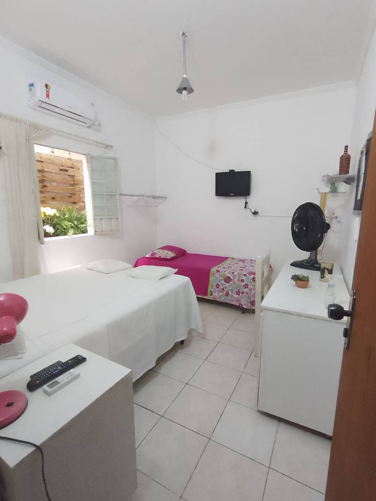 Perfeito para casais, o nosso studio romântico em Guanambi foi criado para proporcionar conforto, privacidade e um clima acolhedor. Com espaço integrado, moderno e bem iluminado, ideal para quem busca uma estadia tranquila e aconchegante. Ar-condicionado e Wi-Fi, garantindo conforto total. Banheiro privativo, moderno e funcional.