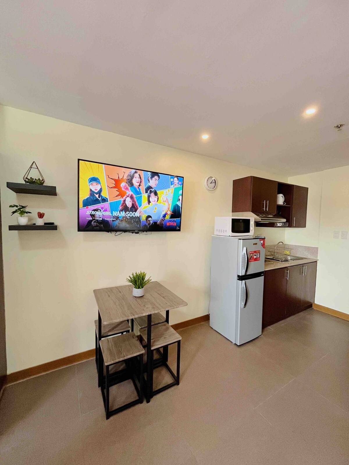 Bu unikal məkanın öz üslubu var. Zəriflik və rahatlığın birləşdiyi naturalı ab-havadan zövq almağınız üçün yaradılıb. + Əyləncə üçün Netflix və Amazon Alexa var. + Şirkətlər üçün BIR qəbzlər verə bilərik. Mənzilin daxilində + Paltaryuyan maşın + Avtomatik ağıllı kilidimiz vasitəsilə təhlükəsiz kodla öz-özünə Giriş + Balkonda gözəl Gün batımı və Şəhər Görünüşü nümayiş etdirilir + Limketkai Mall-dan gəzinti məsafəsi və küçədə qəhvə Layihəsinə asan giriş