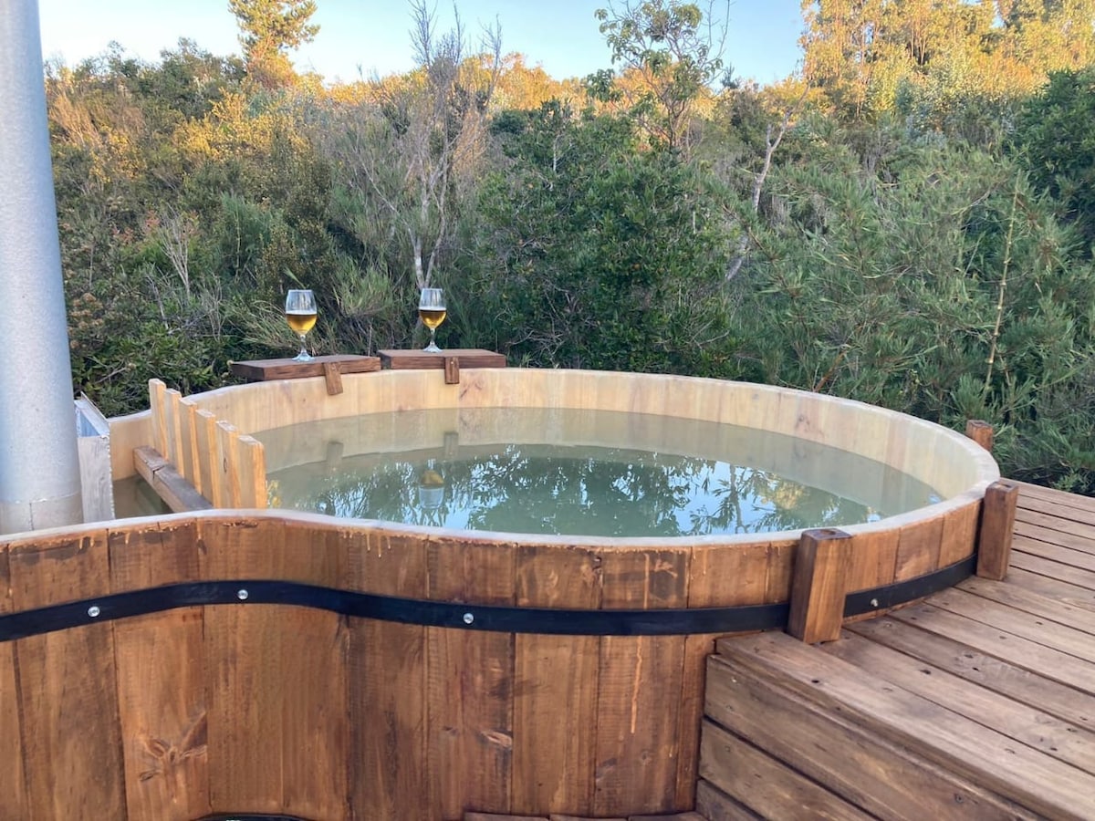 Cabaña en el bosque con tinaja privada