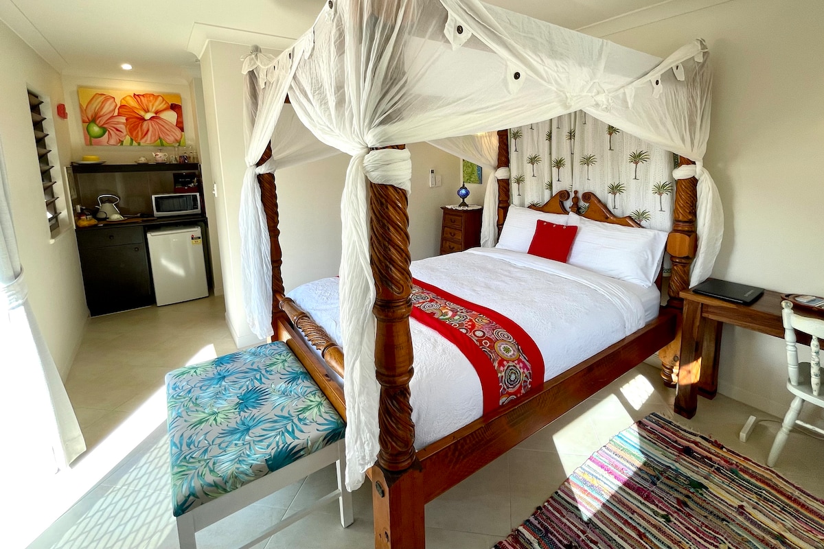 Qonaq Otağından qısa bir gəzinti. Özünüzü məşhur dənizkənarı kurort şəhəri Palm Kove-də görəcəksiniz. Bu geniş Süita öz həyət girişi olan lüks iqamətgahımızın ön tərəfində yerləşir. Burada 4 plakat çarpayı, bali vanna otağı, televizor, çay/qəhvə, soyuducu, mikrodalğalı soba, hava konusu və Wi-Fi var. Məxfiliyiniz və bizim üçün əsas yaşayış yerindən tamamilə ayrıdır. Olduqca yağışlı mənzərələrə malikdir. Küçədə parkinq zamanı sakitlikdir. Qonaqlamanız zamanı istifadə etmək üçün pulsuz xanımlar üçün velosiped.