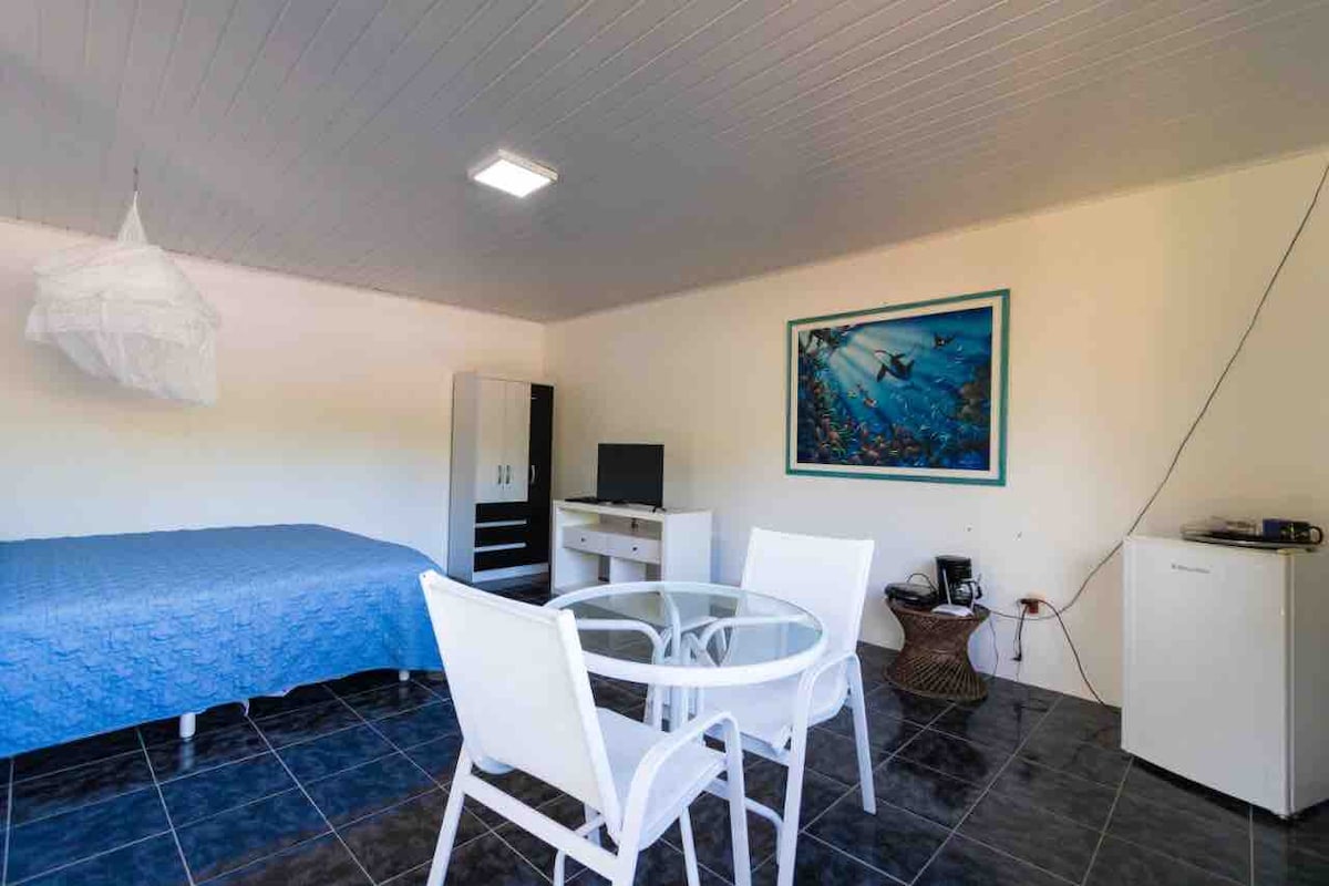 İki nəfərlik çarpayı, kondisioner və Wi-Fi olan 22 kvadratmetrlik geniş loft. Yeməklərinizi hazırlamaq üçün ideal olan təchiz olunmuş mətbəx (soba, soyuducu, qəhvə aparatı və qab-qacaq) var. Məkan dincəlmək və təbiətlə əlaqə qurmaq üçün mükəmməl olan sakit bir ərazidə yerləşir. Cəmi 10 dəqiqəlik gəzinti ilə gözəl bir cığırla Kueyra Çimərliyinə çatırsınız. Dincəlmək və orijinal Boipeba təcrübəsini yaşamaq üçün xüsusi bir yer.
