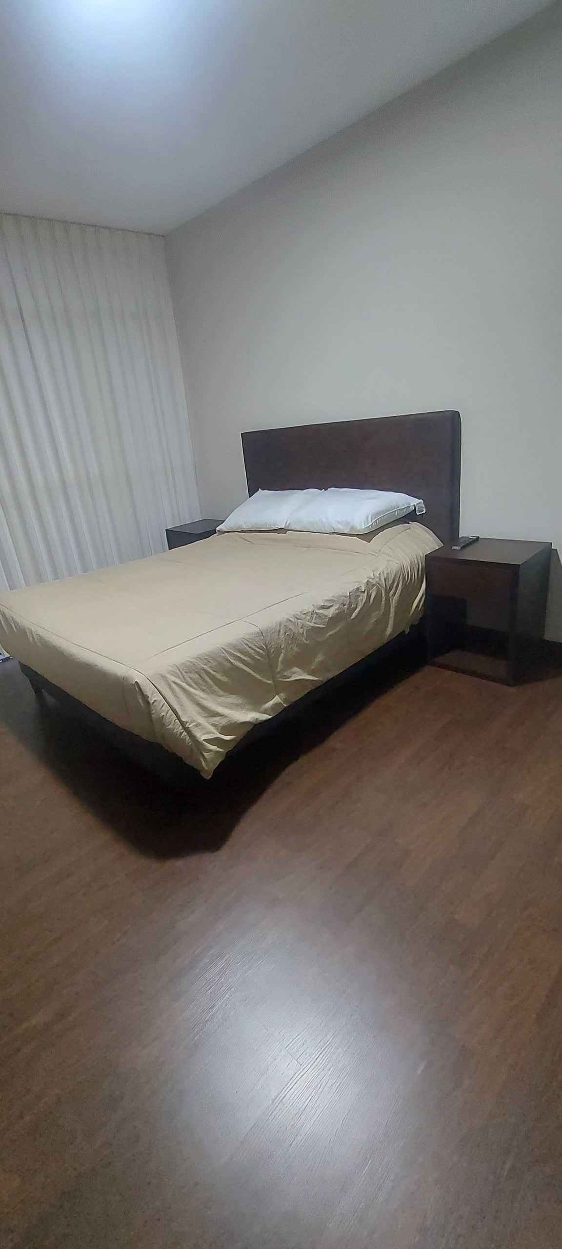 Amplio e iluminado departamento, cuenta con 1 suite con una cama matrimonial y 1 dormitorio con dos camas y un baño extra. Es perfecto para personas con trabajo remoto, familias o grupos de amigos que buscan pasar una linda estadía en Cocha al estilo vintage moderno. 🛜 100MBPS La cocina está equipada por si prefieres cocinar algo. El edificio tiene seguridad 24/7, gimnasio, piscina y saunas. El parque Lincoln es una bella área verde para conectar con la naturaleza y/o hacer ejercicio.