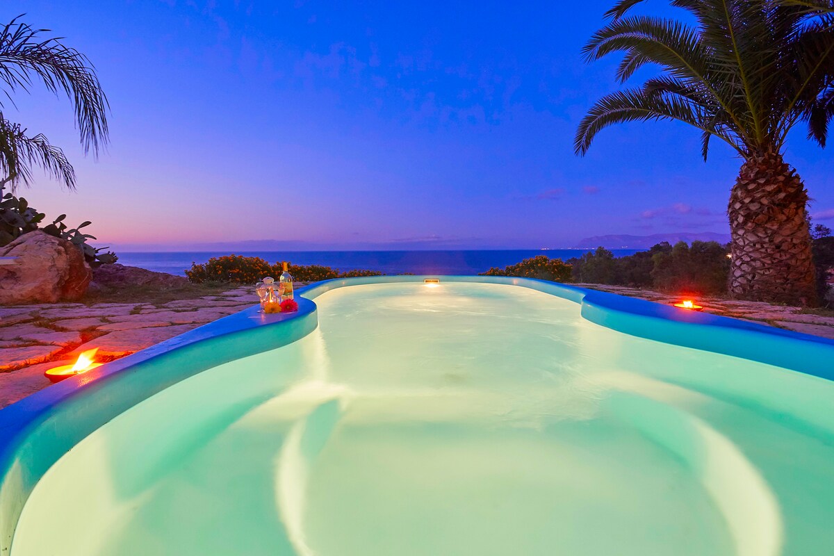 Villa Castellammare del Golfo-dan cəmi 3 km məsafədə yerləşir və üç yataq otağından, vanna və duşu olan iki hamam otağından və camaşırxanadan, böyük yemək otağından, mətbəxdən və hidro-masajlı çox böyük və gözəl İsidilən üzgüçülük hovuzundan ibarətdir. Dənizdə gözəl mənzərəsi olan üzgüçülük hovuzu həmişə açıqdır, lakin MART AYINDAN NOVEMBER-ə qədər qızdırılır. Açıq havada temperatur 15 dərəcə olduqda çox yaxşı işləyir.