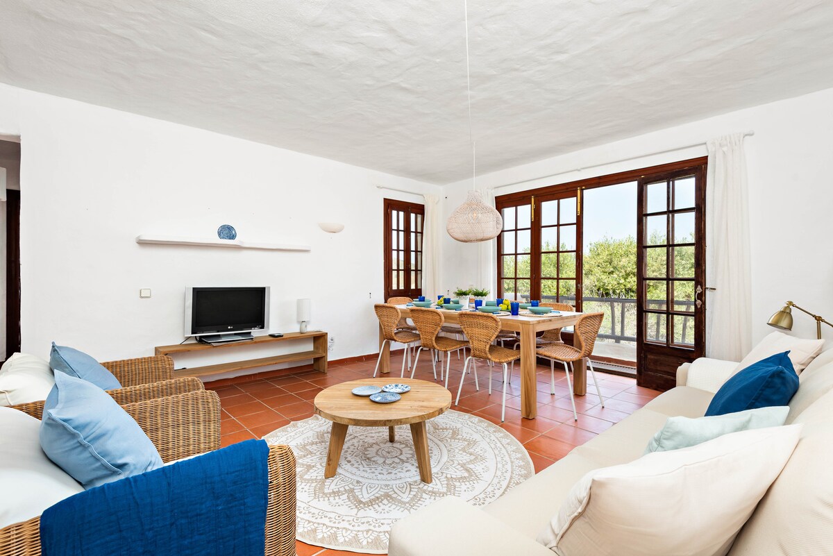 Relax in our lovely Menorcan holiday home : - Fabulous sea and lighthouse views - Great for couples and families - 2 bedrooms, sleeps 4 - Main bathroom & Ensuite -Shared pool - Beach 10 minutes’ walk - Restaurants/shop 5 minutes’ walk - 2km to Fornells town/harbour - Water sports nearby - Coastal walking paths We've welcomed guests to our comfortable Menorcan home since 1988. They return year after year to explore the island, relax on the balcony, enjoy the pool and the lovely Tirant beach.