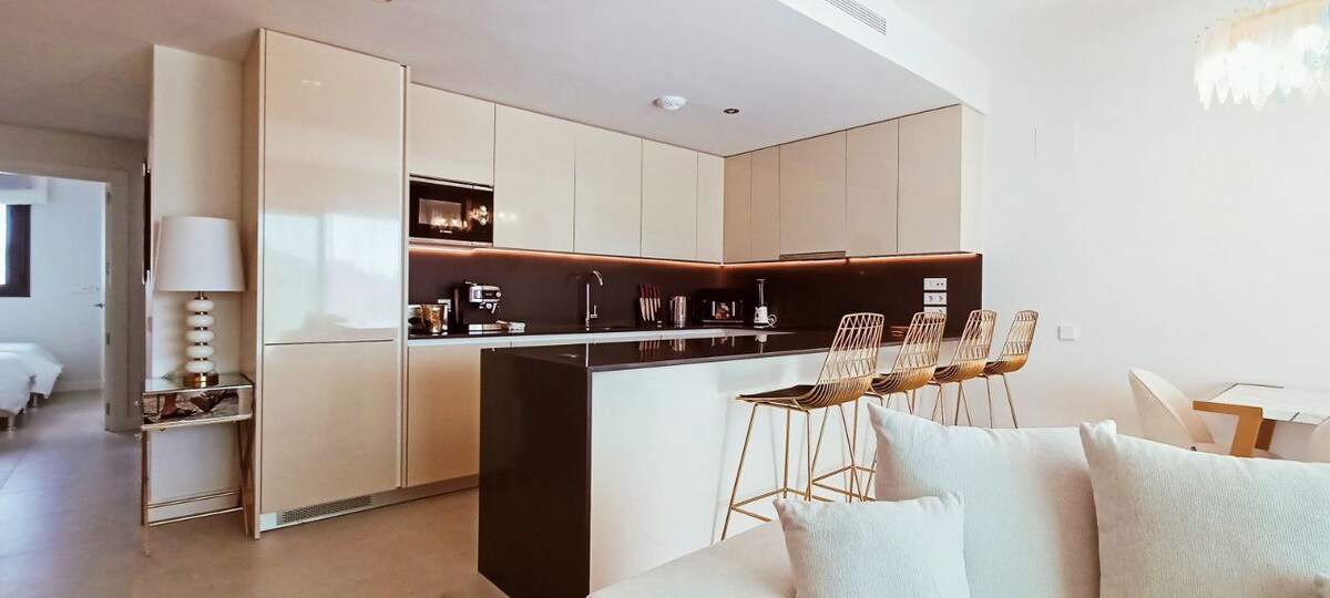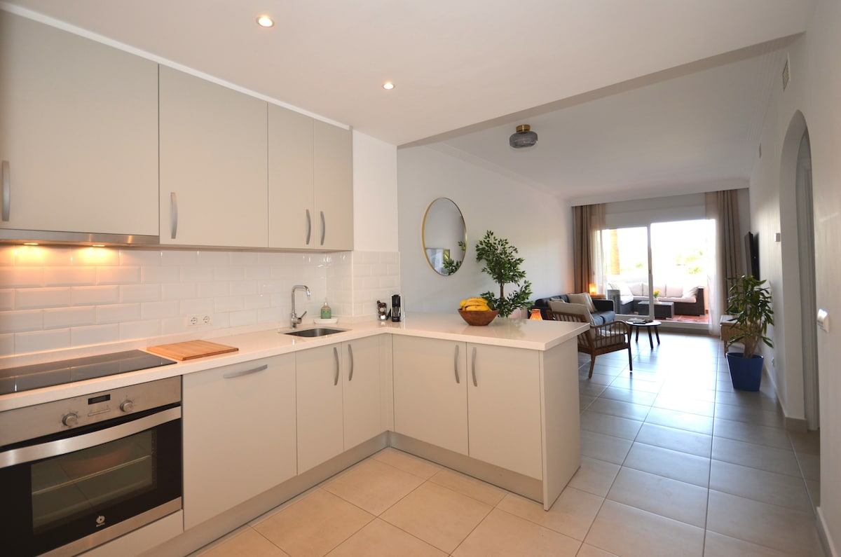 Bu sakit, 2 yataq otaqlı mənzildə 36 m²-lik geniş terrasınızdan qolf meydançasının panoramik günəş doğum mənzərələrinə baxaraq oyanın. 4-6 qonaq üçün rahat yer təmin edən bu villada lüks və böyük çarpayı, sürətli Wi-Fi, eləcə də kurort tipli açıq hovuz, qapalı hovuz və saunaya giriş imkanı var. Calanova Golf yaxınlığında mükəmməl, stressiz tətiliniz sizi gözləyir! İstirahətə hazırsınız? Tarixlərinizi bu gün bron edin!