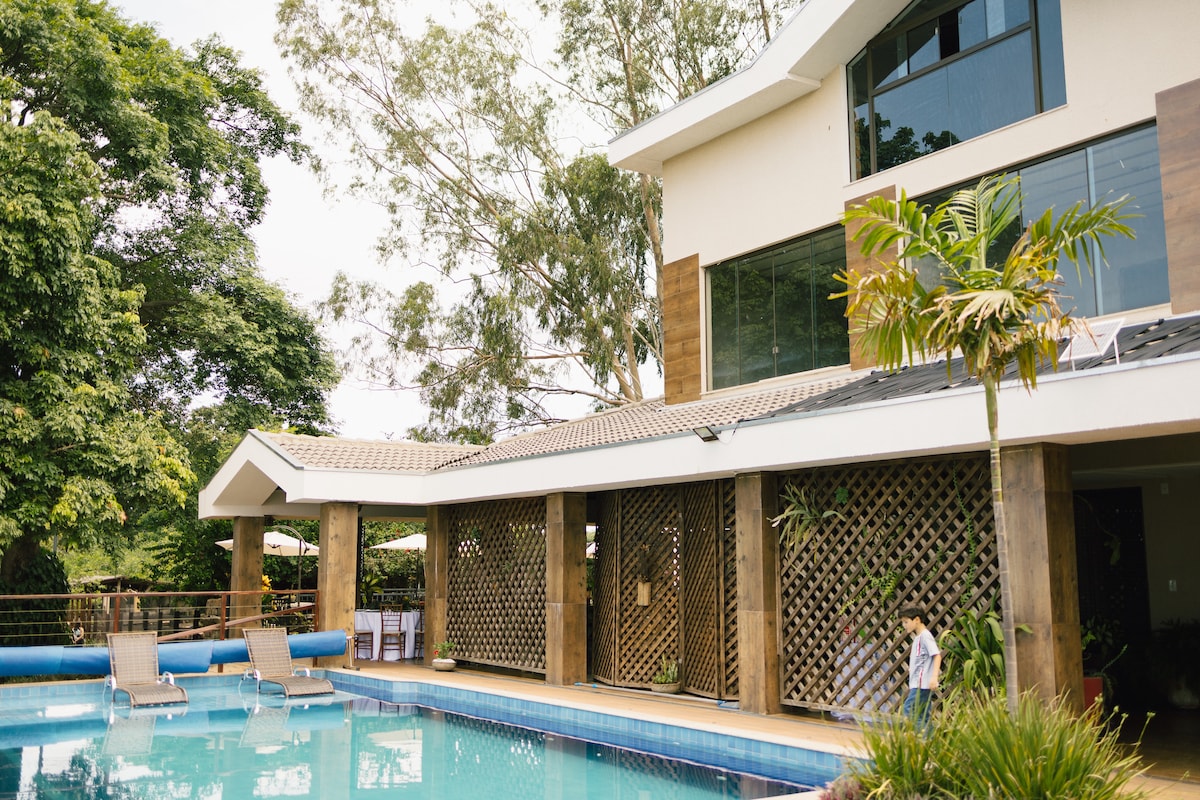 Geniş və rahat ev, şəhər mərkəzinə və supermarketlərə asan giriş. Rahatlıq, istirahət və təbiətlə təmas axtaran ailələr və qruplar üçün idealdır. Açıq havada 5 kondisionerli süita, 1 cakuzi, inteqrasiya edilmiş qonaq otağı və mətbəx, tam mətbəx və barbekü var. İstilikli hovuz, şəlalə, yelləncək, sürüşkən, od çuxuru, stolüstü futbol, meyvə və bitkilərlə dolu həyət. Sakit mühit, rahat çarpayılar və dincəlmək üçün geniş yer.
