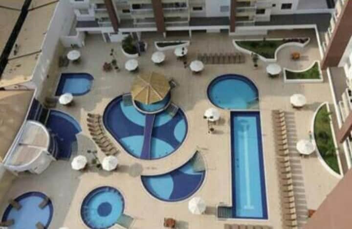 4 nəfərə qədər qonaq yerləşdirə bilən rahat və yaxşı təchiz olunmuş mənzil! Rio Quente-yə giriş, qumlu çimərlik hüququ ilə. Aşağıdakılarla heyrətamiz ümumi məkan: - 9 üzgüçülük hovuzu (müxtəlif temperaturda və soyuq su ilə qızdırılır); - Böyüklər və uşaqlar tərəfindən istifadə edilə bilən su sürüşməsi və rampa; - Ofurôs; - Sauna; - Futbol sahəsi; - Qapalı və açıq oyun otağı; Oyun məkanı (bilyard masası, stolüstü tennis və futbol); - İdman zalı; - Kinoteatr; - Kopa körpəsi; - Lunaçeket; - Restaurante;