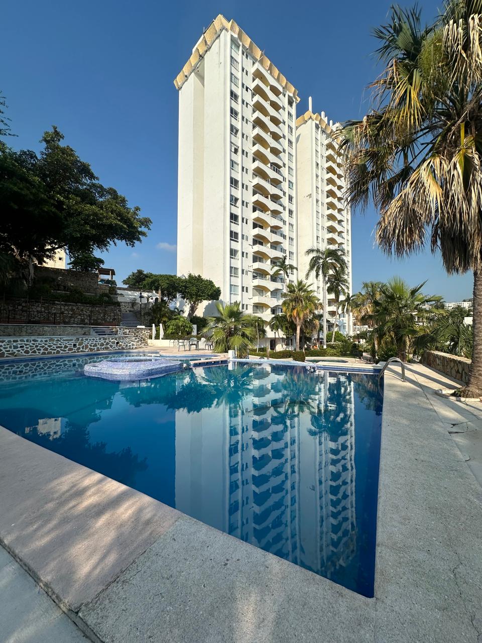 Depto en Condominio con vista al mar (antes era Hotel), con 3 albercas (2 grandes y una para niños), tendrás Playa Caleta a menos de 1 minuto caminando! Ubicado sobre Costera Miguel Alemán, Circle k a un lado del condominio, muchos restaurantes y comercios, por la cercanía de la Playa! gasolinera, farmacias, walmart. Las áreas de alberca, cuentan con camastros, sillas y mesita con sombrilla para su comodidad, además de sanitarios.