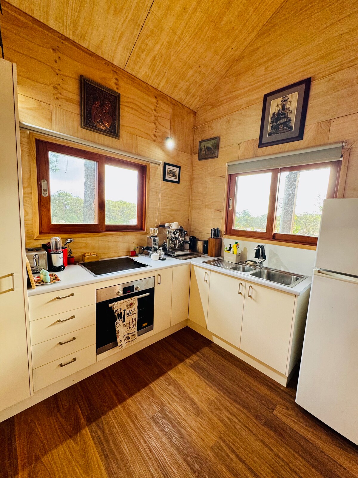 Reconnect with nature at this stunning off grid escape. Surrounded by native Gyamea Lillies this Somersby “Gunya” Tiny House feels far away from the hustle and bustle despite its close proximity to Gosford and only 20 minutes away from Central Coasts beautiful beaches. Located on traditional Darkinjung land this property is often visited by local wildlife including cockatoos, crayfish, deer, cattle and horses and if your lucky you may see the platypus that make home in the creek.