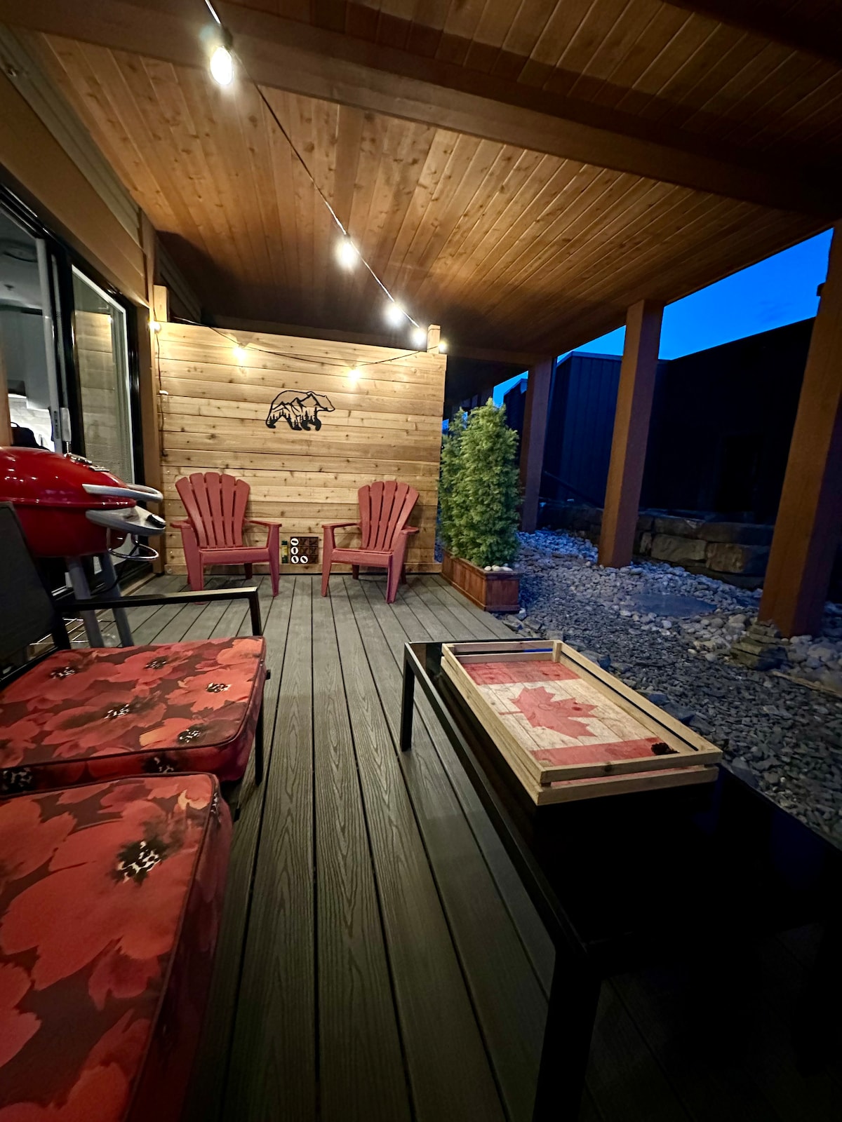 Məkanımızı qonaqların və ailələrin Okotoks göl həyatının unikal təcrübəsindən zövq alması üçün təzə və müasir, lakin rahat hisslərlə hazırlamışıq. Balıq ovu çubuğu tutmaq, üzmək və ya kayakda avar çəkmək kimi hiss etməyinizdən asılı olmayaraq, zövq almağınız üçün hər şey buradadır. Gününüzü cakuzidə islanmaqdan, verandada içki içməkdən və ya sevimli netflix şousunuzu seyr etməkdən zövq alın.