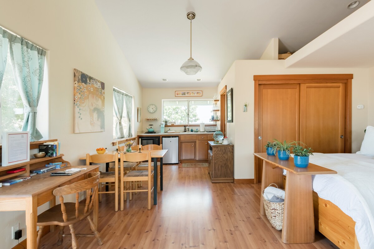 Özünüzü gül və alma ağacları ilə yenidən zəngin olan 3 hektarlıq bağ möcüzəsində Hummingbird Haven və şəxsi süitanızın dolğun təcrübəsinə qərq olun. Hər iki dünyanın ən yaxşısını kəşf edin - öz sakit, ecazkar bir şəraitdə - tarixi Mendokino cazibəsindən bir mil uzaqlıqda və bir çox təbii möcüzələrə yaxın. Diqqətli ev sahibiniz hər bir ehtiyacı qarşılamaq və sakit, sakit qonaqlama təmin etmək üçün tanınır. Burada dincəlmək, istirahət etmək və enerji yığmaq üçün rahat vahəniz var.