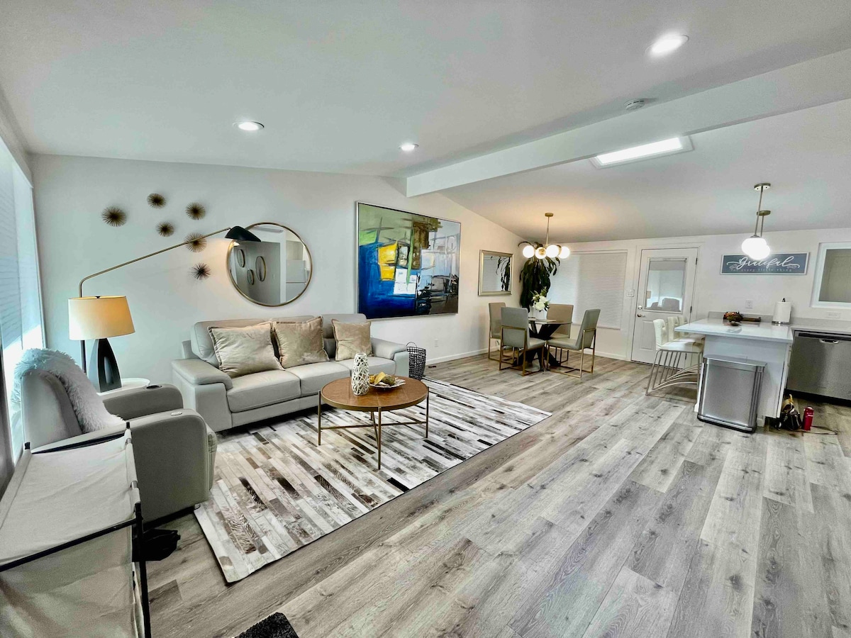 Close to all the actions downtown San Jose has to offer, our newly renovated guest suite is uniquely designed just for the space. You'll have a private entrance and front porch all to yourself. This modern/luxurious home featuring a large living room/dining/kitchen/work area combo, dramatic bay windows, textured stone wall/fireplace, fully stocked kitchen, modern amenities, cozy bedroom, specially commissioned artworks, laundry, and spa-like bathroom, this suite offers you a home away from home.